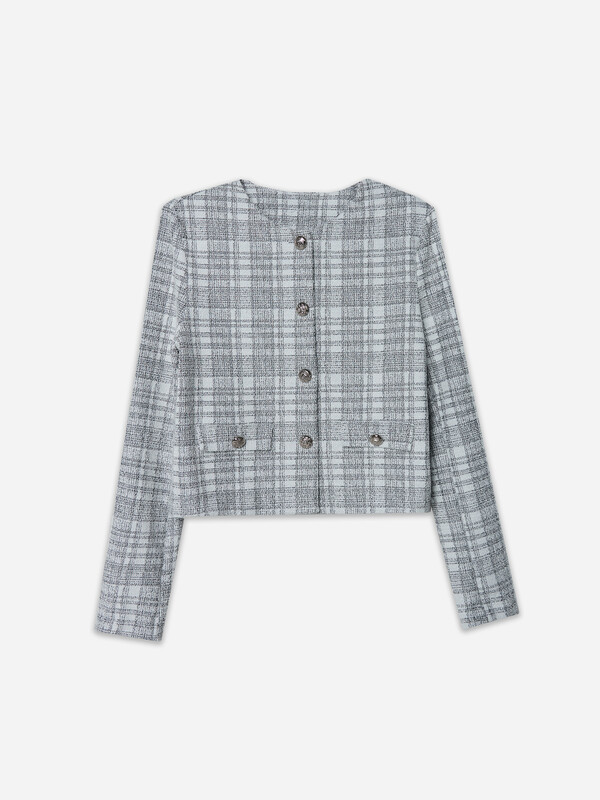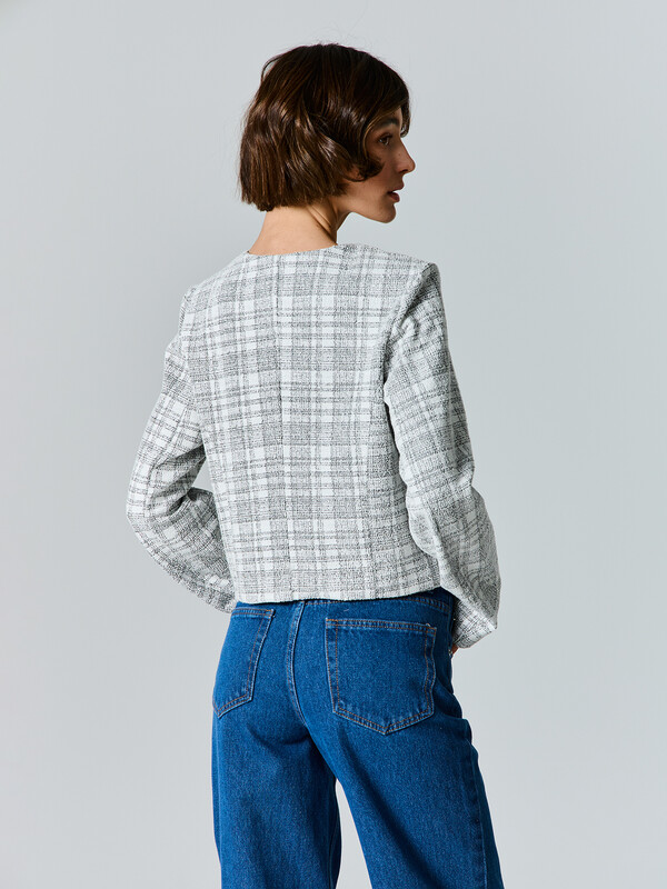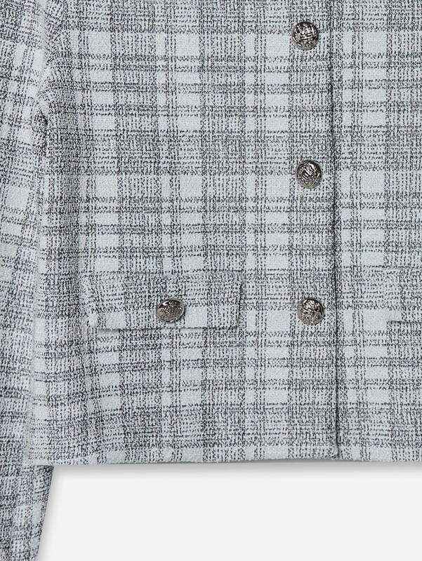 Этот укороченный женский жакет прямого силуэта станет стильным дополнением вашего гардероба. Горловина круглой формы и длинные рукава придают жакету элегантный вид. Застежка на петли и пуговицы обеспечивает удобство, а спереди располагаются клапаны с пуговицами, добавляя изделию изысканности. Для его выполнения использовали материал академик с добавлением люрекса, который придает характерный легкий блеск. Этот жакет идеально подойдет для создания стильных образов, добавляя в ваш наряд нотку изящества и шика.