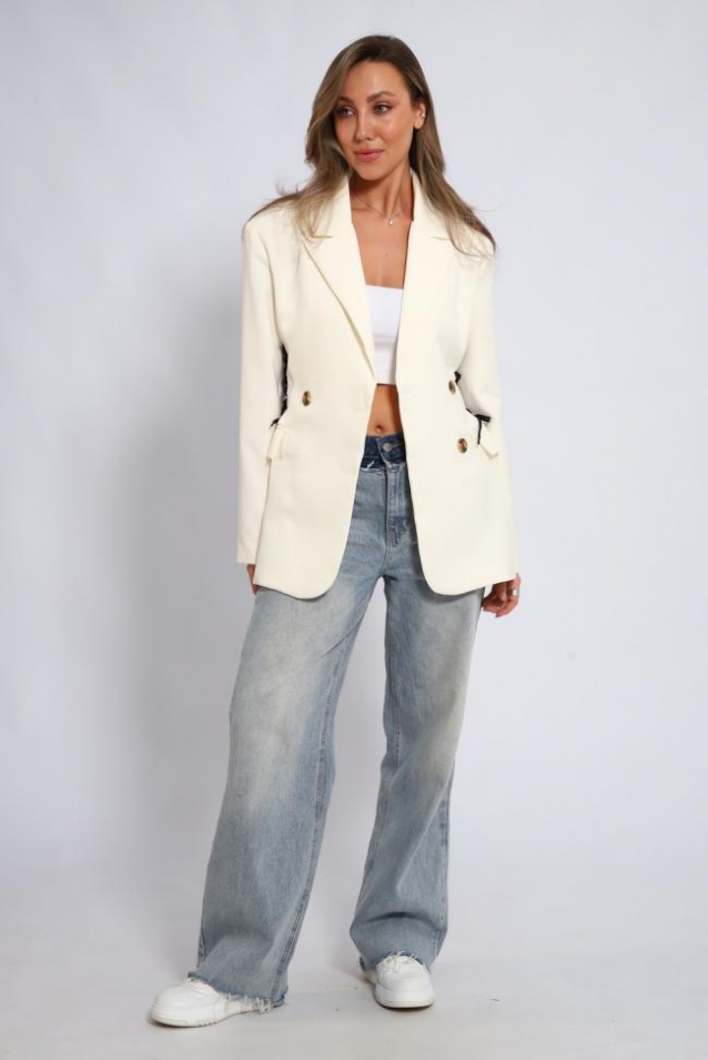 Представляем изысканный женский жакет на пуговицах, который станет ярким акцентом в вашем гардерове! Этот жакет сочетает в себе классический крой и дерзкие детали. Оригинальная шнуровка по бокам изделия добавляет ему неповторимый шарм и позволяет регулировать посадку по фигуре. Элегантные лацканы подчеркивают изящество силуэта. Жакет выполнен из высококачественной ткани и имеет комфортную подкладку, обеспечивающую идеальную посадку и удобство в носке. Жакет женский на пуговицах идеально подходит для создания стильных образов в различных стилях от делового до повседневного. Ищете женский жакет с изюминкой? Этот жакет со шнуровкой отличный выбор! Купите сейчас и добавьте элегантности и оригинальности в свой гардероб. Доступные размеры и цвета. Не упустите возможность приобрести этот уникальный жакет с лацканами!