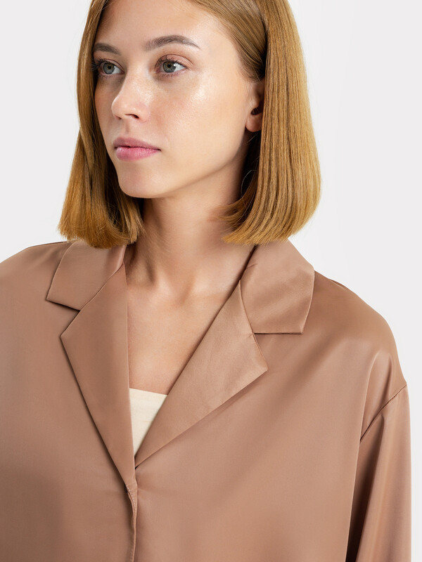 Производитель: Mark Formelle Силуэт прямой и свободный, рукава длинные втачные, линия плеча немного спущена. Центральная застежка на пуговицы, воротник отложной. Низ изделия и низ рукавов застрочен швом в подгибку.