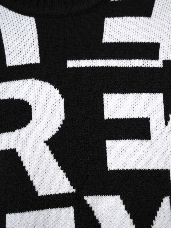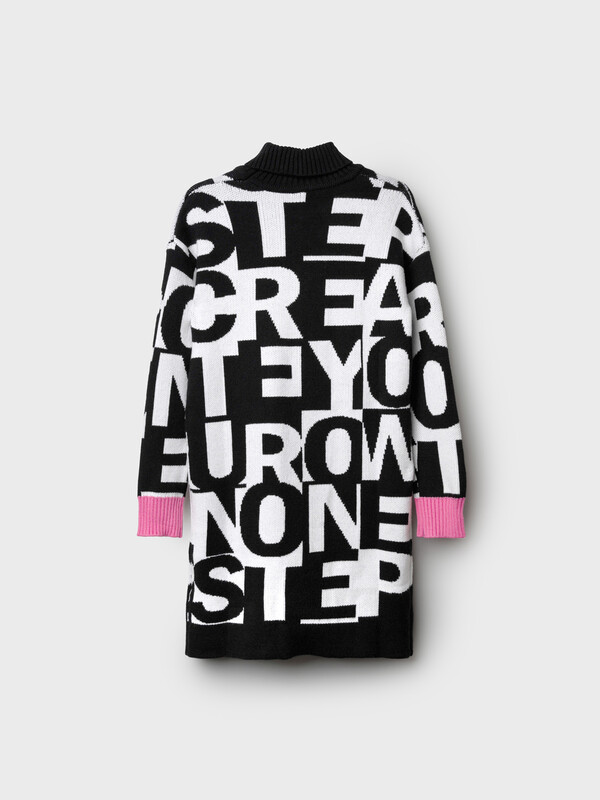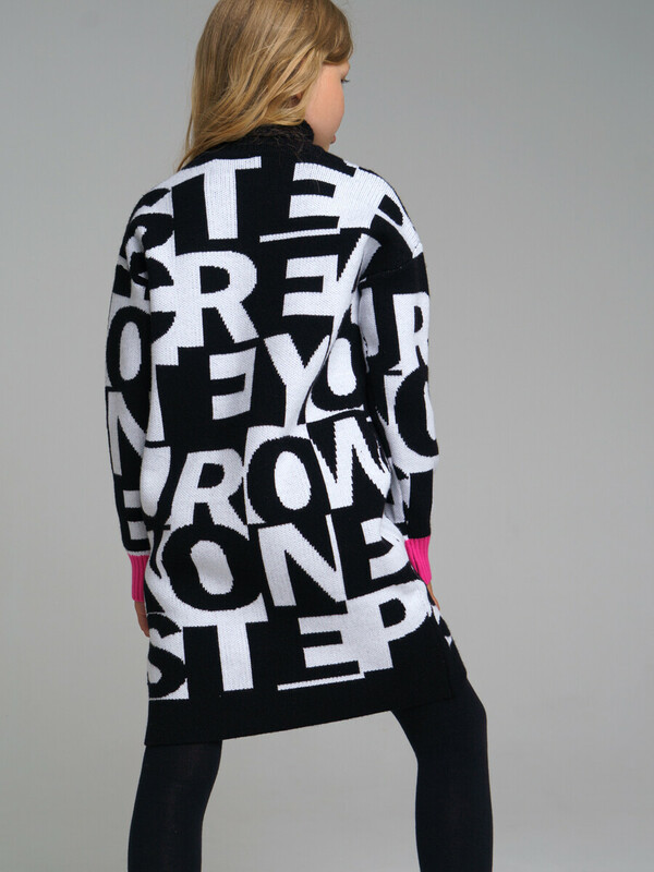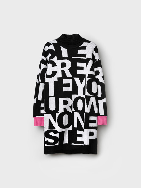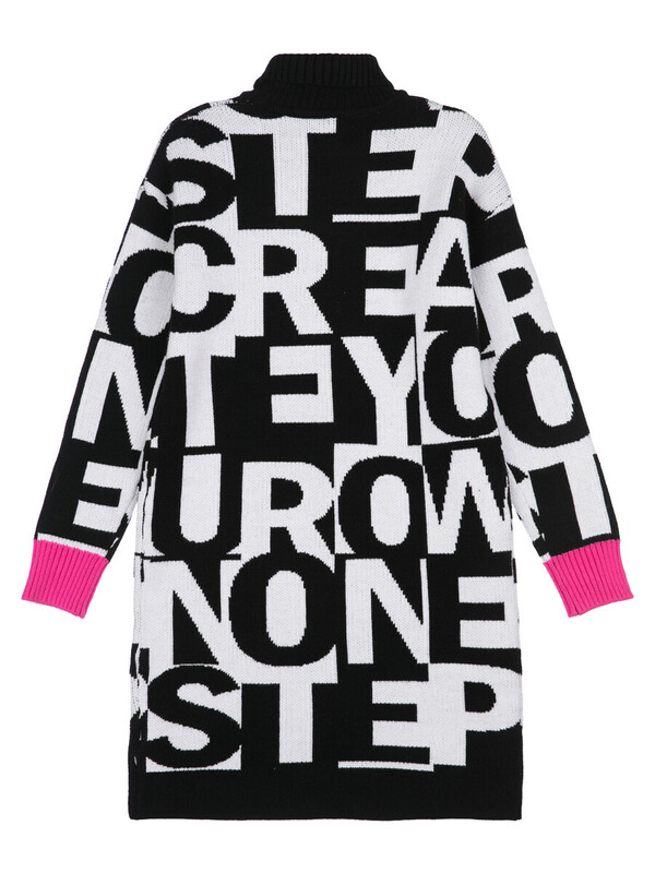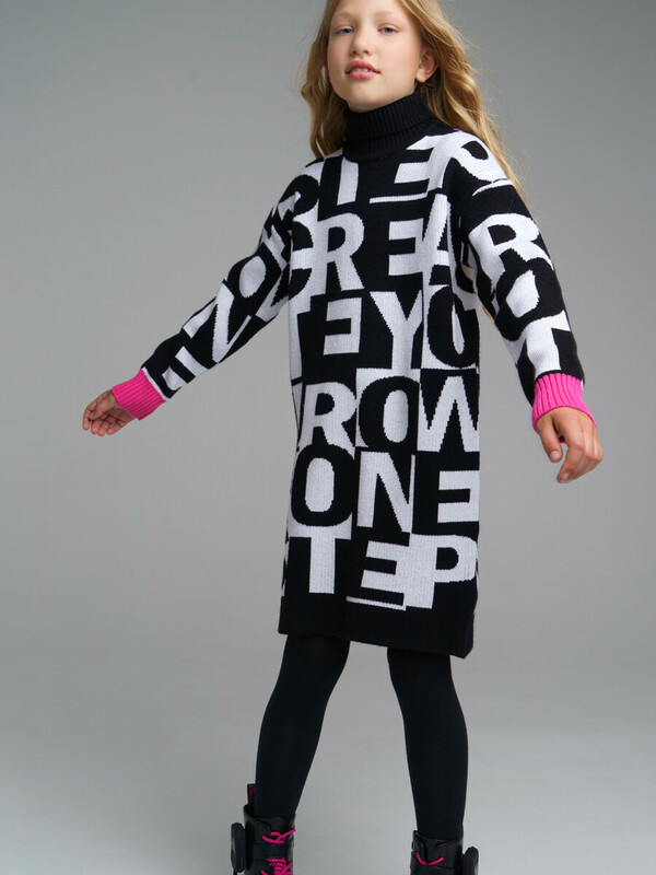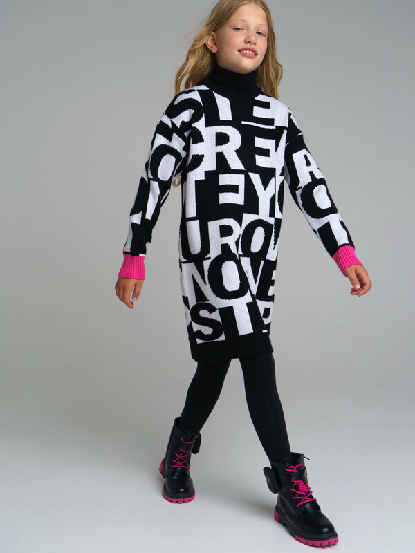 Жаккардовое платье из вязаного трикотажа прямого силуэта. Воротник и манжеты в рубчик