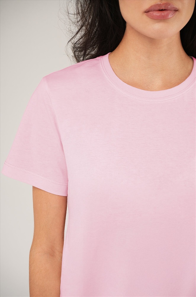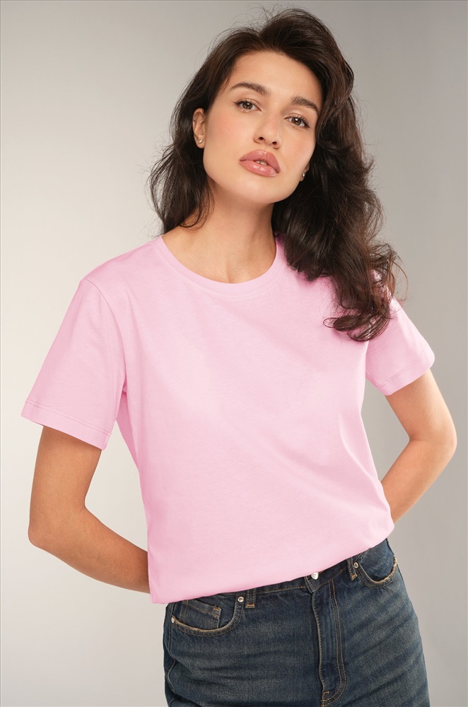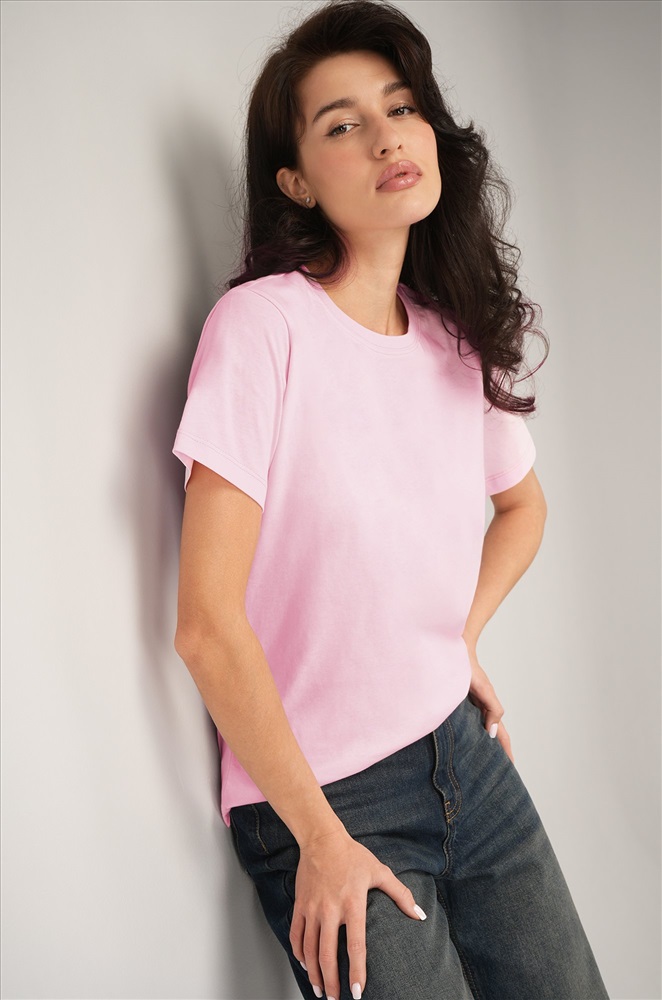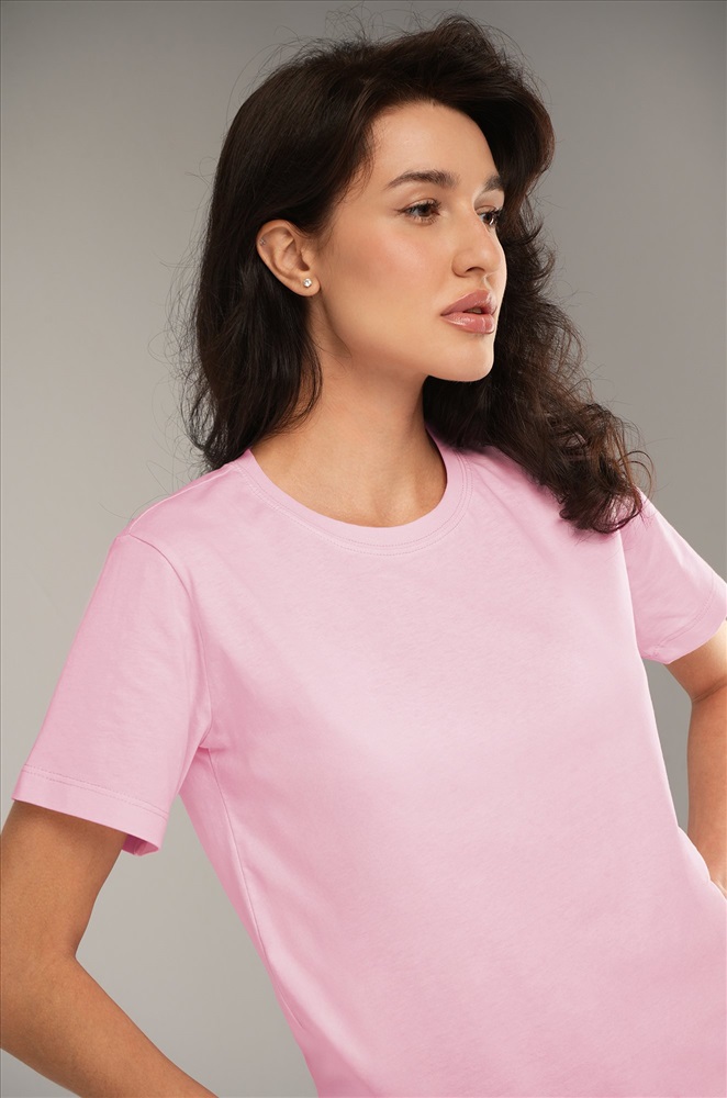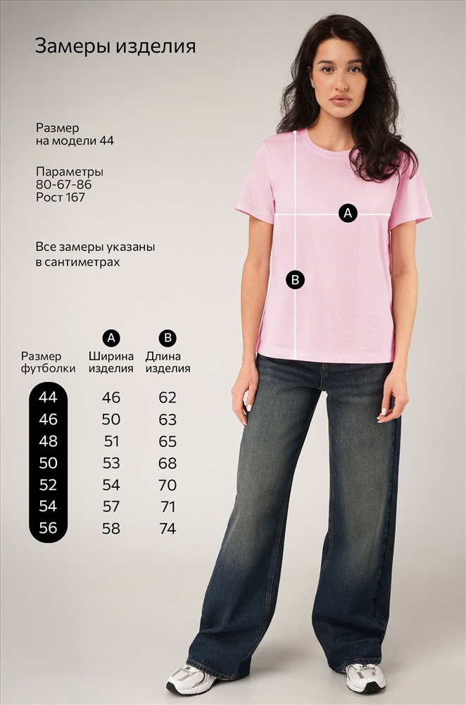 Преимущества: — лаконичная футболка выполнена из натурального 100% хлопка; — базовая футболка из трикотажа кулирная гладь (150 г/м2) отличается дышащими свойствами; — светло-розовая футболка универсальна и легко сочетается с любыми элементами гардероба; — футболка прямого кроя с коротким рукавом отлично садится на разные типы фигур и не стесняет движений; — хлопковая футболка для женщин выдерживает многократные стирки, сохраняя форму и цвет. Трикотажная футболка станет стильной основой образов в стиле кэжуал.