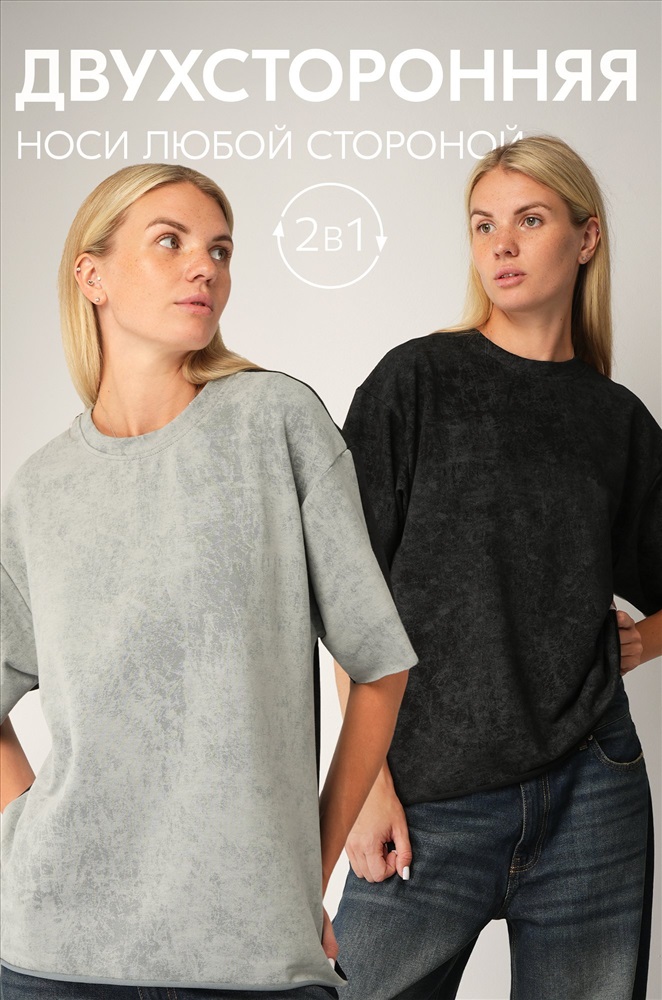 Двухсторонняя женская футболка оверсайз — основа классного образа. Футболка с варёным эффектом — это сочетание комфорта и выразительного стиля.