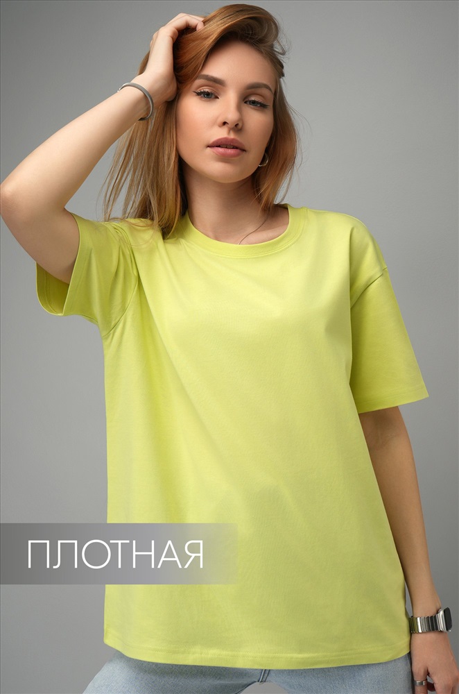 Свободная и такая освежающая! Светло-желтая женская футболка точно знает, как сделать день ярче. Плотный хлопок, мягкий трикотаж и расслабленный оверсайз создают безупречный союз для лета и не только.