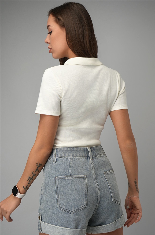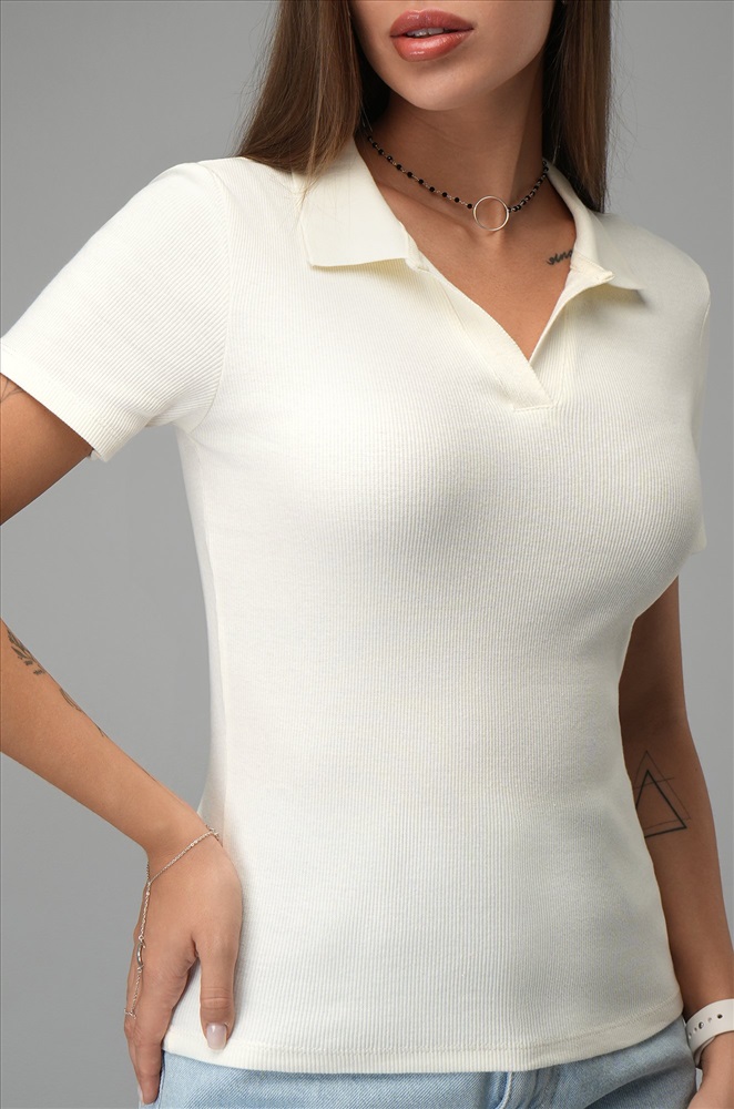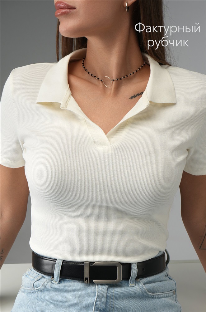 Женская футболка-поло выполнена из нежного трикотажа кашкорсе. Стильное поло в рубчик поможет создать крутой кэжуал образ на лето. Футболка для женщин приковывает взгляды благодаря эффектному сочетанию V-образного выреза и лаконичного отложного воротника!