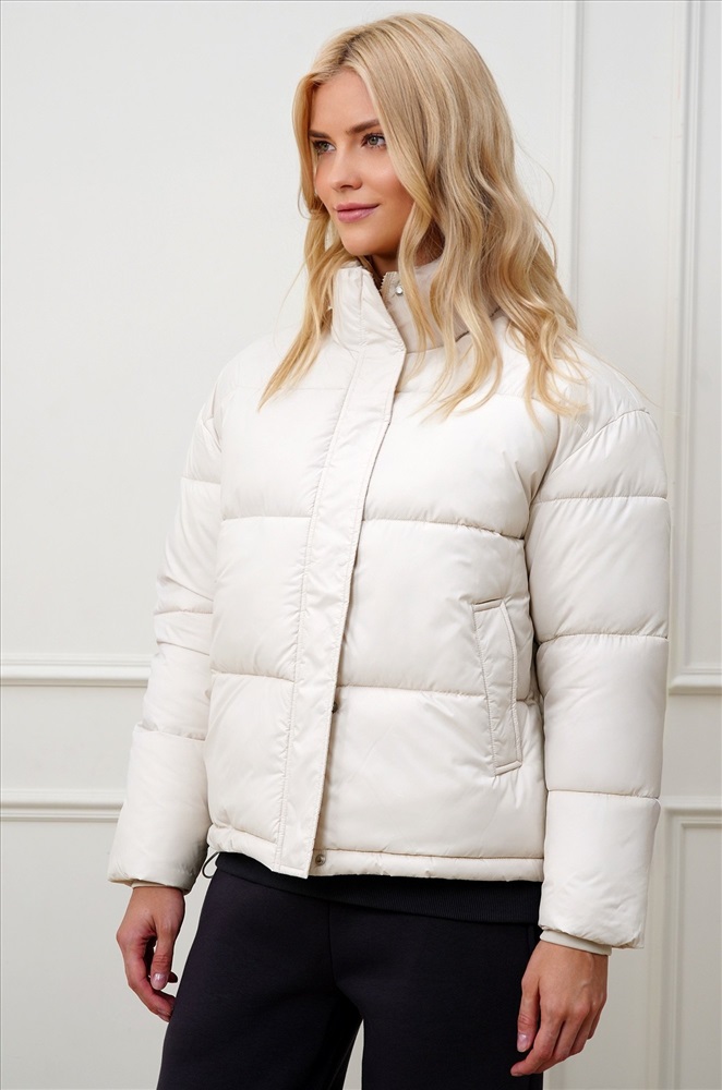 Преимущества: — непродуваемая ткань с водоотталкивающей пропиткой; — утеплитель Down cotton (синтепон) с оптимальной плотностью 200 г/м²; — температурный режим от +10°С до -10°С; — теплая куртка имеет застежку на молнию и ветрозащитную планку с кнопками; — манжеты на рукавах защитят от холода; — удобные карманы; — по низу утяжки со стопперами для регулировки объема; — бежевая куртка создает современный аккуратный силуэт. Прямой крой, стеганая фактура и высокая стойка делают короткую куртку зефирку практичной и женственной. Дутая куртка для женщин комфортна для весенних или осенних прогулок. Болоньевая куртка идеальна для активных будней.