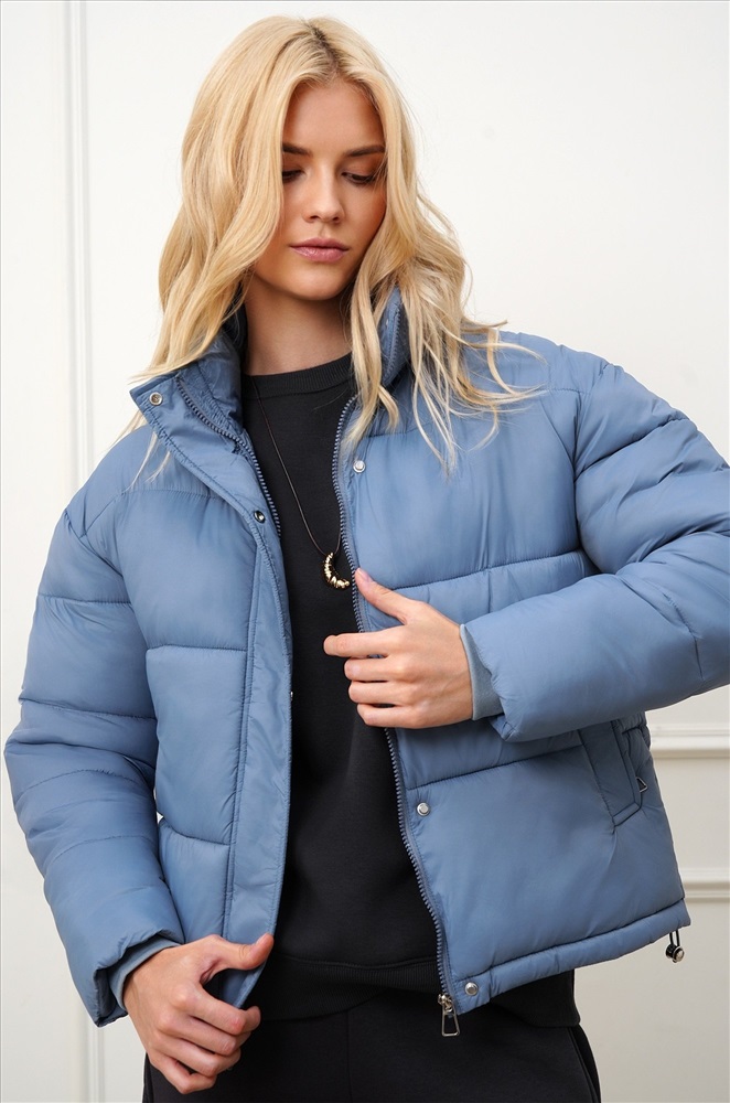 Преимущества: — непродуваемая ткань с водоотталкивающей пропиткой; — утеплитель Down cotton (синтепон) с оптимальной плотностью 200 г/м²; — температурный режим от +10°С до -10°С; — теплая куртка имеет застежку на молнию и ветрозащитную планку с кнопками; — манжеты на рукавах защитят от холода; — удобные карманы; — по низу утяжки со стопперами для регулировки объема; — голубая куртка создает современный аккуратный силуэт. Прямой крой, стеганая фактура и высокая стойка делают короткую куртку зефирку практичной и женственной. Дутая куртка для женщин комфортна для весенних или осенних прогулок. Болоньевая куртка идеальна для активных будней.