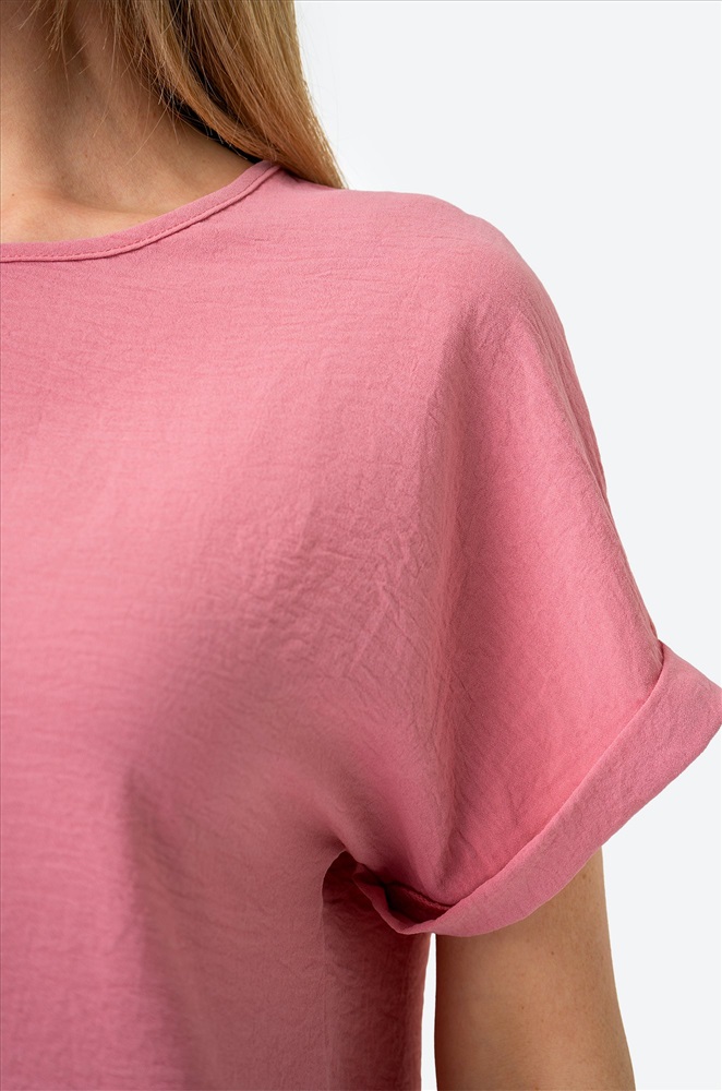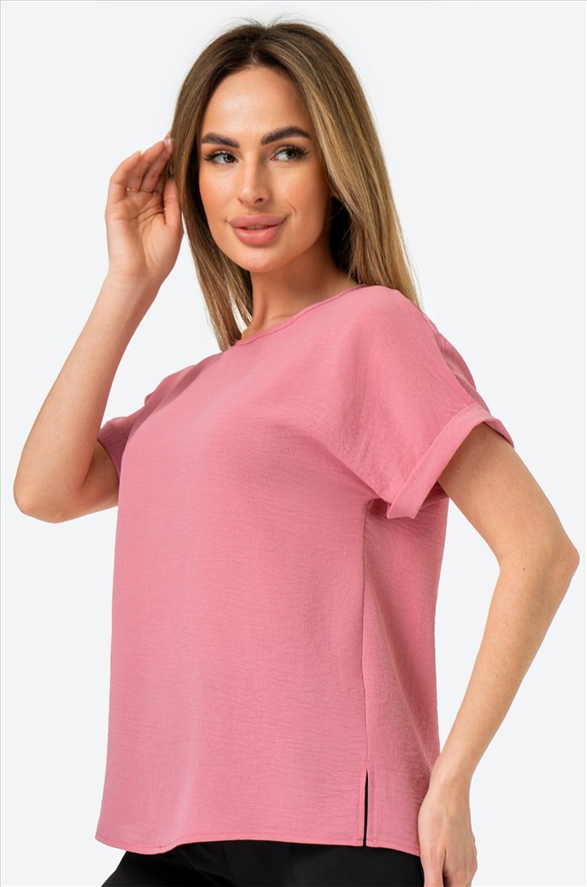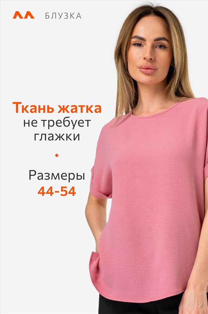 Забудьте про глажку! Модель выполнена из ткани, которая не мнется. Благодаря своим свойствам розовая блуза красиво драпируется на теле, создавая воздушные складки и небрежные линии. Свободный крой дарит максимальную свободу движений и комфорт. Короткие рукава добавляют особую изюминку и делают эту модель из вискозы универсальной – она подойдет как для прохладных летних вечеров, так и для праздничных мероприятий. Однотонная блузка – стильная летняя база, которая дополнит офисный образ на каждый день. Подойдет для прогулок и для офиса. Широкий размерный ряд, есть большие размеры. Создайте чувственный образ этим летом!