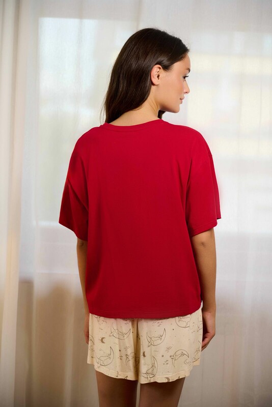 В комплект входит красная футболка и бежевые шорты. Футболка свободного кроя, с короткими рукавами и круглым вырезом, украшена крупным принтом с изображением лошади на луне и надписью «Have a good dream». Шорты бежевого цвета, на мягкой резинке, прямого свободного кроя, декорированы нежным принтом с изображением лошади на луне и нашивкой «Free flying» на поясе. Пижама идеально подходит для домашнего отдыха и сна, обеспечивая комфорт и приятные тактильные ощущения. 100% Хлопок Комментарии к товару