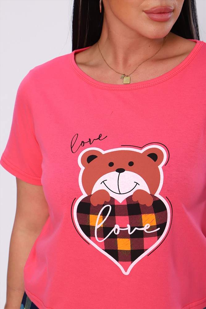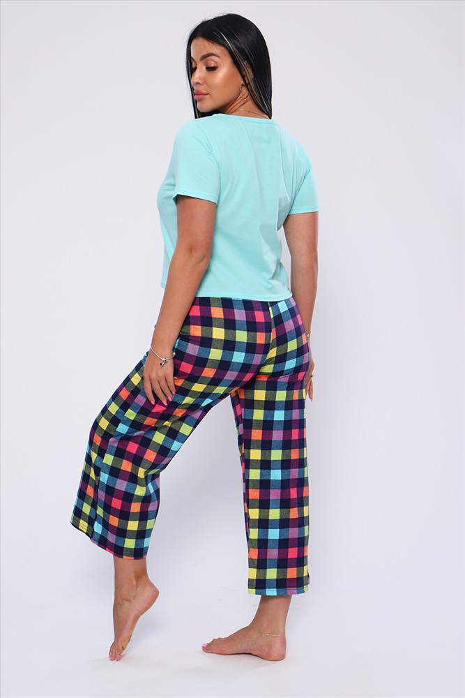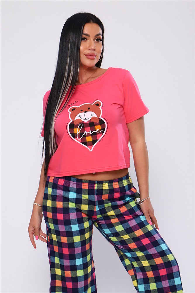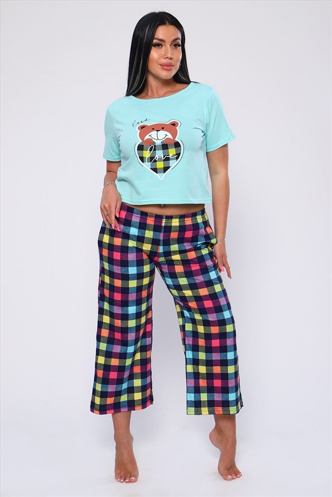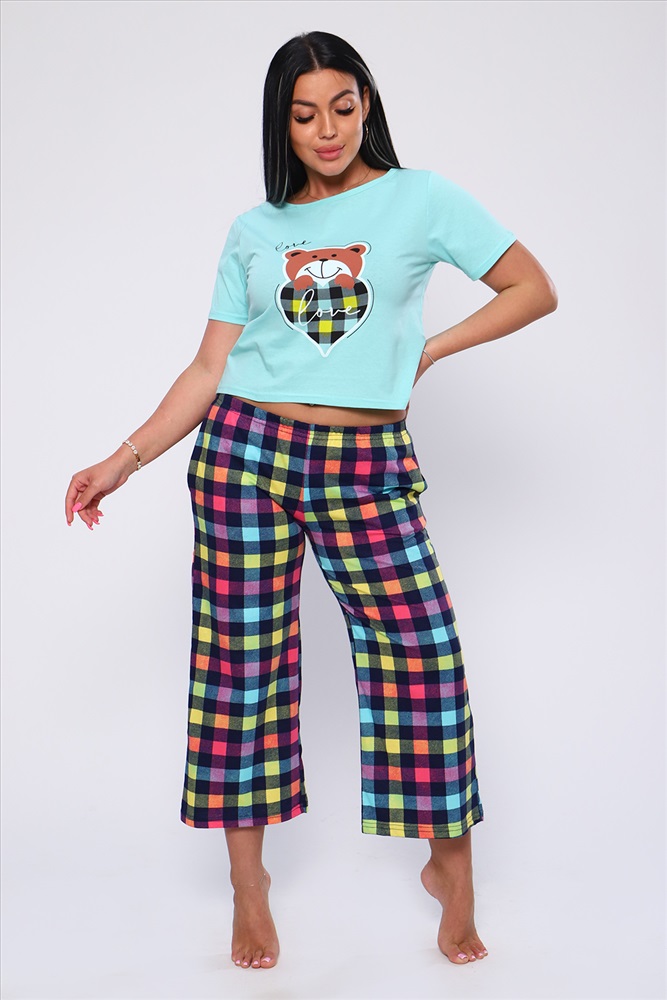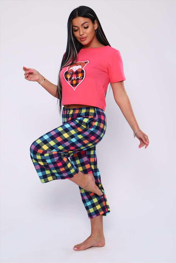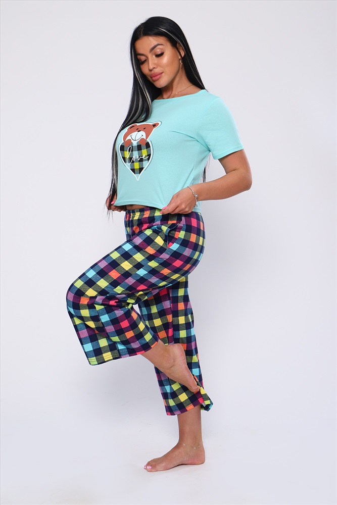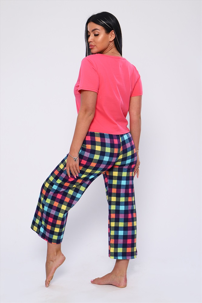 Состав: хлопок 100% Модель: Пижама 24380 Тип товара: пижама с брюками Бренд: Натали Длина: укороченный Карман: боковые Материал: кулирка Назначение: для дома Особенности: на резинке Отделка: с карманами | с печатью Посадка: средняя посадка Рисунок: клетка | крупный принт | зверюшки Рукав: короткий рукав Сезонность: лето | осень | весна | зима Силуэт: свободный Скидка: любая | от 10% и больше Стиль: домашний Пижама женская свободного кроя выполнена из 100 % хлопка в двух расцветках. Комплект состоит из футболки и укороченных брюк кюлот. Яркая футболка с округлым вырезом горловины и коротким рукавом. Брюки прямые, свободные с боковыми карманами. Модный принт с сочетанием клетчатой набивки придает изделию оригинальность. Удобный и комфортный женский домашний костюм идеально подойдет для повседневной жизни, домашних дел, для сна и отдыха. Таблица размеров и весафутболка