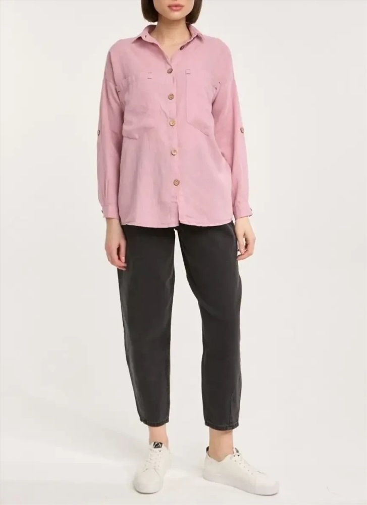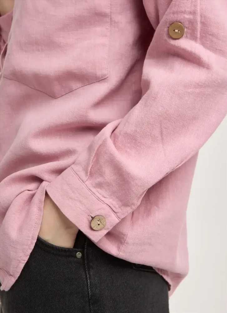 Женская рубашка из хлопка и кетена представляет собой универсальный элемент гардероба, сочетающий в себе комфорт и стиль. Она украшена накладными карманами спереди, которые добавляют функциональности и оригинальности дизайну. Классический воротник подчеркивает элегантность изделия, а длинные рукава, которые можно легко закатать, обеспечивают удобство и адаптацию к различным ситуациям. Отделка из пуговиц придает рубашке аккуратный вид и позволяет регулировать посадку.