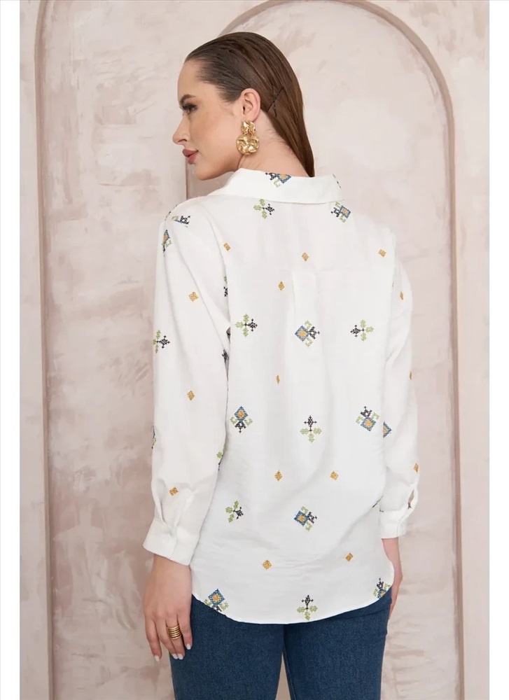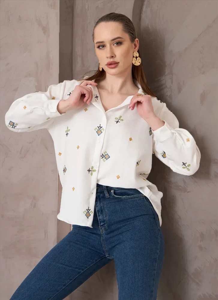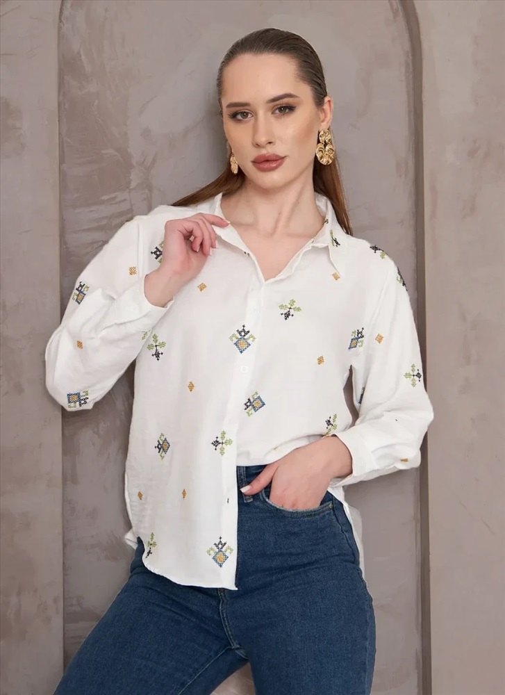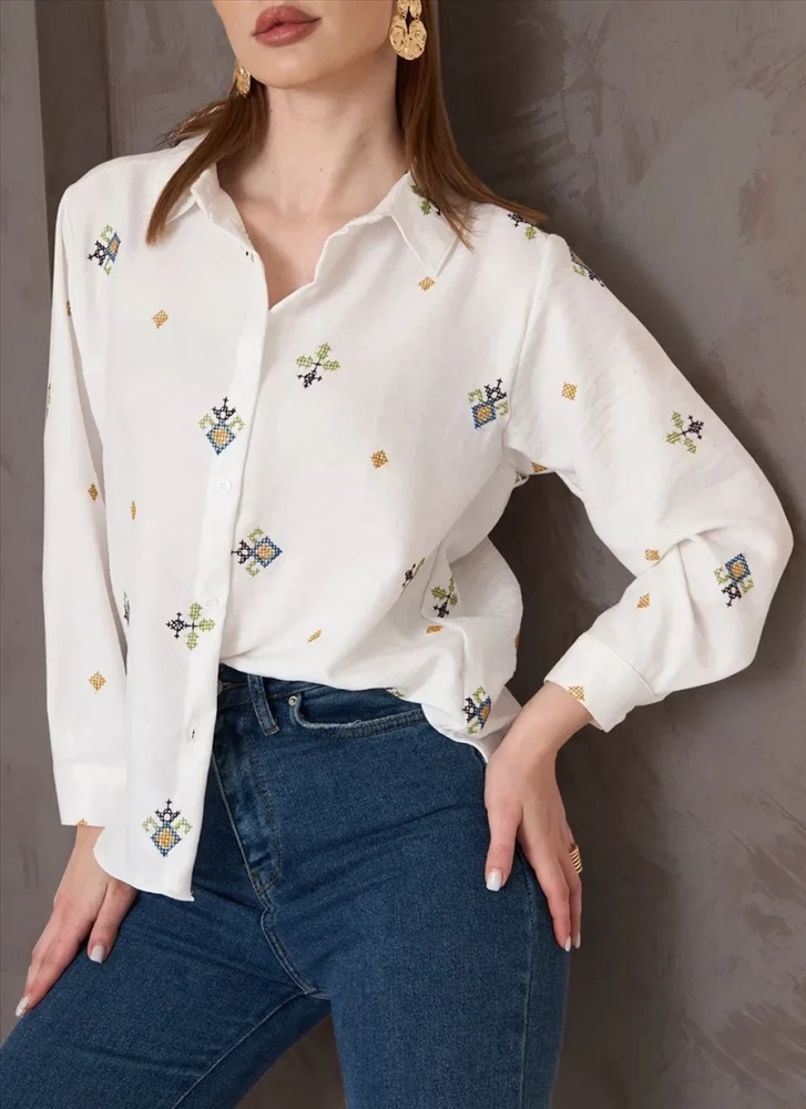 Женская рубашка с длинным рукавом выполнена из материала с гладкой фактурой, что придает изделию изысканный вид. Особенностью модели является декоративная вышивка, которая украшает рубашку и подчеркивает её элегантность. Важно отметить, что качественная вышивка сохраняет свою яркость даже после многократных стирок, не теряя цвета и четкости рисунка. Это свойство особенно ценно для тех, кто предпочитает вещи, способные выдерживать активное использование и уход. Таким образом, женская рубашка с длинным рукавом и декоративной вышивкой является универсальным выбором для женщин, стремящихся подчеркнуть свою индивидуальность и чувство стиля.