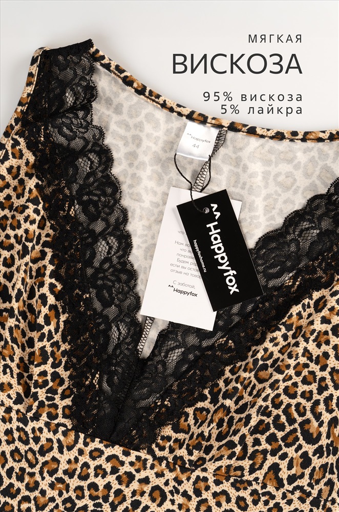 Преимущества: — леопардовая сорочка подчеркивает фигуру; — сорочка из мягкой вискозы с лайкрой приятна к телу, эластична и сохраняет форму; — трикотажная ткань отлично пропускает воздух и дарит комфорт для сна и отдыха; — женская ночнушка создает утонченный и элегантный образ; — отрезной лиф с кружевной отделкой добавляет нежности и женственности; — кружевная сорочка с широкими лямками обеспечивает надежную посадку и удобство; — длина сорочки до колена делает образ гармоничным и изысканным; — ночная сорочка с леопардовым рисунком подходит для домашнего отдыха. Сорочка с принтом леопард для женщин станет отличным выбором для расслабленных вечером дома. Размер 42: длина:87 см; ширина:34 см. Размер 44: длина:89 см; ширина:36 см. Размер 46: длина:90 см; ширина:38 см. Размер 48: длина:92 см; ширина:41 см. Размер 50: длина:95 см; ширина:42 см. Размер 52: длина:97 см; ширина:44 см. Размер 54: длина:100 см; ширина:47 см. Размер 56: длина:102 см; ширина:48 см. *замеры выборочные, могут незначительно отличаться. Комментарии к товару