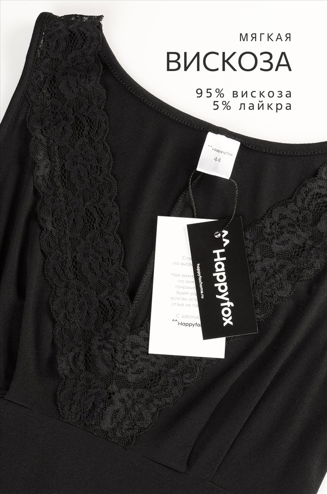 Преимущества: — однотонная черная сорочка подчеркивает фигуру; — сорочка из мягкой вискозы с лайкрой приятна к телу, эластична и сохраняет форму; — трикотажная ткань отлично пропускает воздух и дарит комфорт для сна и отдыха; — женская ночнушка создает утонченный и элегантный образ; — отрезной лиф с кружевной отделкой добавляет нежности и женственности; — кружевная сорочка с широкими лямками обеспечивает надежную посадку и удобство; — длина сорочки до колена делает образ гармоничным и изысканным; — ночная сорочка из вискозы подходит для домашнего отдыха. Сорочка для женщин станет отличным выбором для расслабленных вечером дома. Размер 42: длина:87 см; ширина:34 см. Размер 44: длина:89 см; ширина:36 см. Размер 46: длина:90 см; ширина:38 см. Размер 48: длина:92 см; ширина:41 см. Размер 50: длина:95 см; ширина:42 см. Размер 52: длина:97 см; ширина:44 см. Размер 54: длина:100 см; ширина:47 см. Размер 56: длина:102 см; ширина:48 см. *замеры выборочные, могут незначительно отличаться. Комментарии к товару