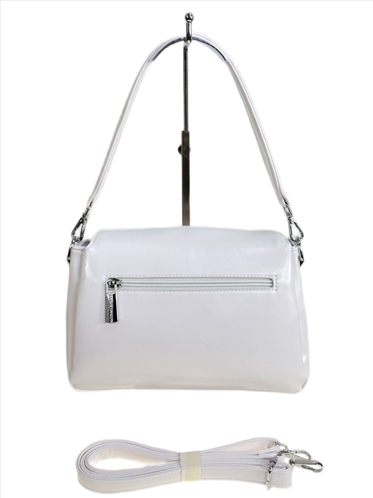 Длина: 26 см Высота: 18 см Ширина: 11 см Ручка: 22 Длинный ремень: да Вес: 560 гр Материал: Искусственная кожа Подклад: Текстиль Тип застёжки: Клапан Упаковка: Полиэтиленовый пакет Компактная женская сумка из искусственной кожи. Сумка закрывается на небольшой клапан с магнитами, внутри три отделения: центральное отделение на молнии и два открытых отделения. Снаружи на задней стенке карман на молнии. В комплекте удлиненная ручка и длинный плечевой ремень.