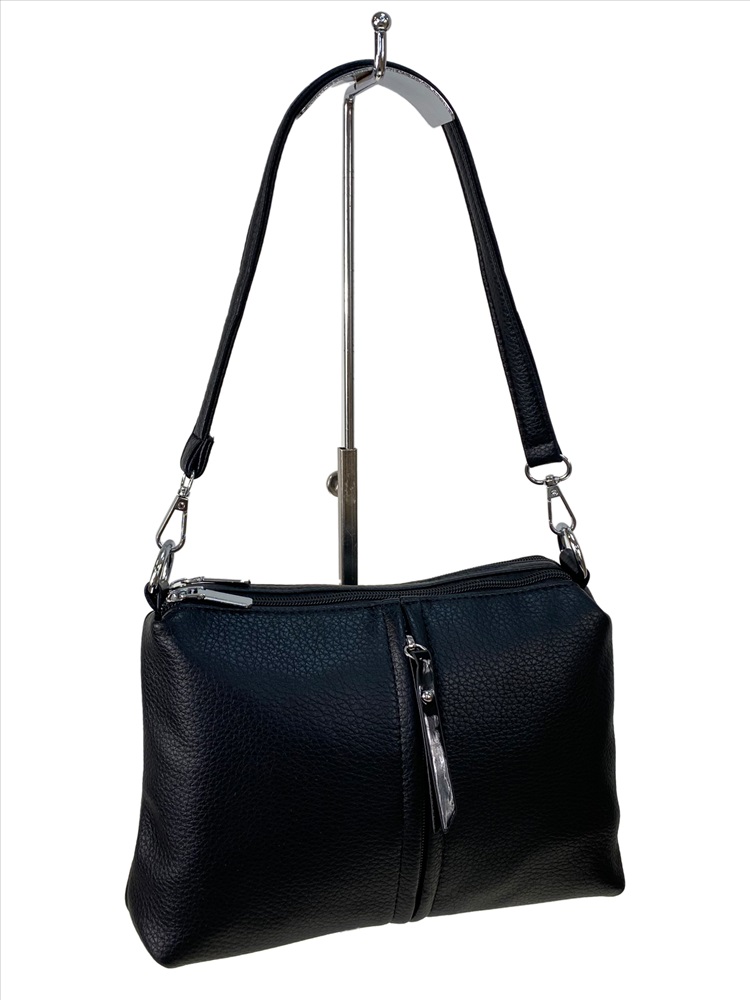 Длина: 24 см Высота: 18 см Ширина: 7 см Длинный ремень: да Вес: 450 гр Материал: Искусственая кожа Подклад: Текстиль Тип застёжки: Молния Упаковка: Тканевый пакет, полиэтиленовый пакет Компактная, стильная сумочка кросс-боди, выполнена из искусственной кожи. В неё войдут самые необходимые вещи, которые всегда должны быть под рукой, при этом ваши руки будут абсолютно свободны. Сумка имеет длинный ремень, регулируется по длине и короткую ручку. Сумка имеет два отделения, каждое застёгивается на молнию. Внутри дополнительный карман на молнии и два открытых кармана. На задней стенке карман на молнии.