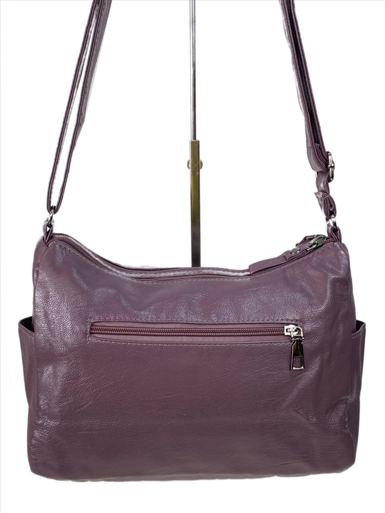 Женская сумка из мягкой искусственной кожи. Сумка имеет одну ручку, регулируется по длине, удобно носить на плече или через плечо. Сумка имеет два отделения, каждое закрывается на молнию. Внутри карман на молнии. На фронтальной стороне , прорезной кармана на молнии и накладной карман на молнии. На задней стороне карман на молнии. По бокам сумки с двух сторон, открытые накладные карманы.