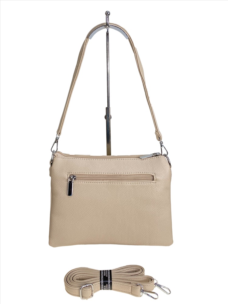 Длина: 24 см Высота: 18 см Ширина: 4 см Ручка: 22 Длинный ремень: да Вес: 510 гр Материал: Искусственная кожа Подклад: Текстиль Тип застёжки: Молния Упаковка: Тканевый пакет, полиэтиленовый пакет Элегантная и компактная женская сумка из искусственной кожи. Сумка закрывается на молнию, внутри три отделения, центральное закрывается на молнию, два боковых кармана открыты, внутри дополнительный карман на молнии и открытый карман. Сумка имеет удобную ручки и длинный ремень, регулируется по длине. Снаружи, на передней стенке два прорезных кармана на молнии. На задней стенке карман на молнии.