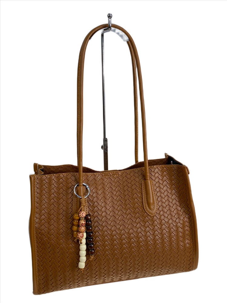Женская сумка из искусственной кожи. Сумка имеет ручки, удобно носить на плече, в руках или на запястье. Сумка закрывается на кнопку, внутри текстильная косметичка и карман на молнии. Дополнена оригинальным брелком.