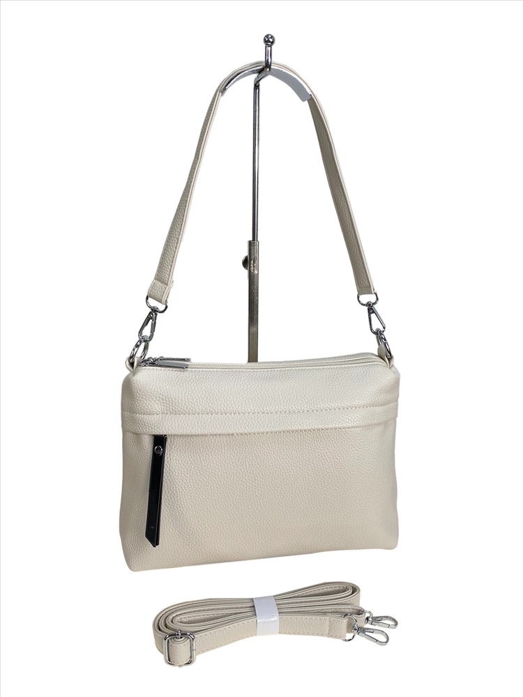 Длина: 24 см Высота: 18 см Ширина: 5 см Ручка: 20 Длинный ремень: да Вес: 530 гр Материал: Искусственная кожа Подклад: Текстиль Тип застёжки: Молния Упаковка: Тканевый пакет, полиэтиленовый пакет Элегантная женская сумка из мягкой искусственной кожи. Сумка имеет два отделения, каждое закрывается на молнию, внутри дополнительный карман на молнии и два открытых кармана. Снаружи, на передней стенке прорезной карман на молнии. На задней стенке карман на молнии. В комплекте удобная ручка и длинный плечевой ремень.