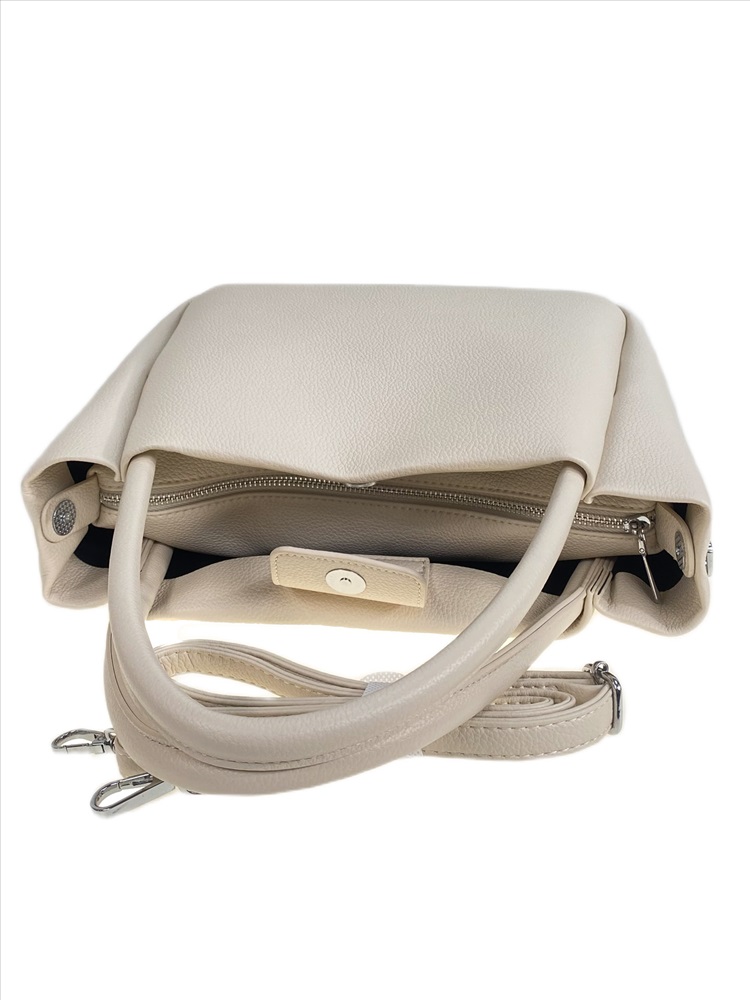 Длина: 33 см Высота: 22 см Ширина: 13 см Ручки: 16 Длинный ремень: да Вес: 550 гр Материал: Искусственная кожа Подклад: Текстиль Тип застёжки: Молния Упаковка: Полиэтиленовый пакет Элегантная женская сумка из искусственной кожи. Сумка имеет три отделения: центральное закрывается на молнию, два крайних отделения - открытые. В комплекте длинный плечевой ремень.