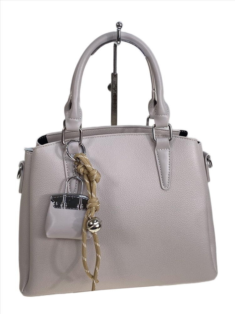 Элегантная женская сумка из искусственной кожи. Сумка имеет три отделения, центральное закрывается на молнию, два других на магнитную кнопку, внутри дополнительный карман на молнии и открытый карман. В комплекте длинный плечевой ремень и оригинальный брелок.