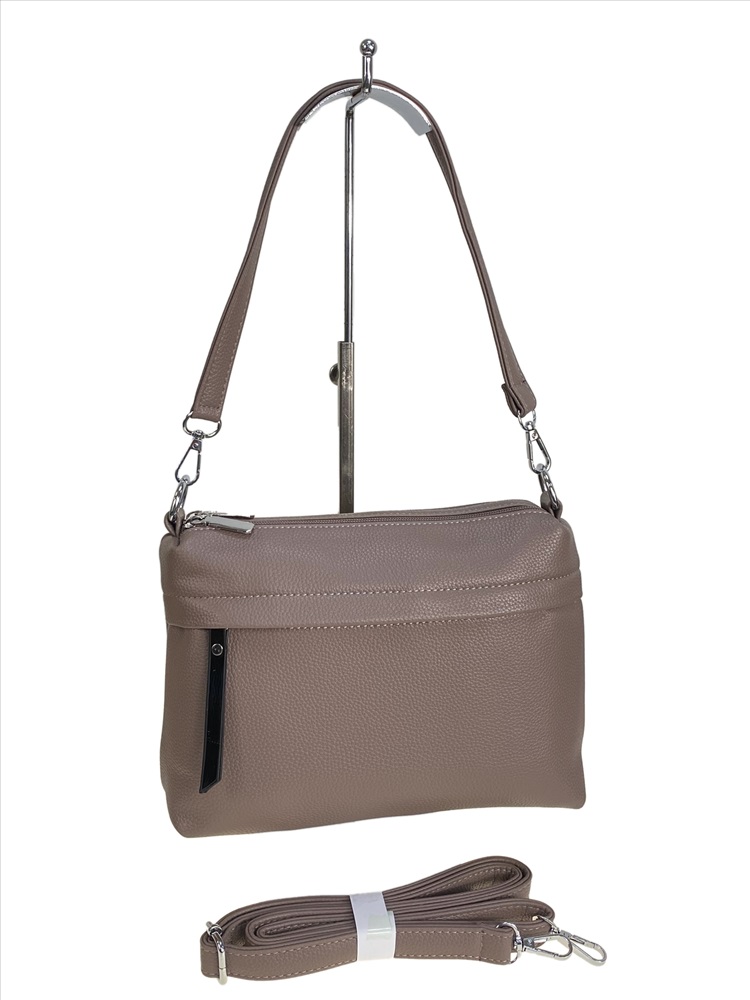 Длина: 24 см Высота: 18 см Ширина: 5 см Ручка: 20 Длинный ремень: да Вес: 530 гр Материал: Искусственная кожа Подклад: Текстиль Тип застёжки: Молния Упаковка: Тканевый пакет, полиэтиленовый пакет Элегантная женская сумка из мягкой искусственной кожи. Сумка имеет два отделения, каждое закрывается на молнию, внутри дополнительный карман на молнии и два открытых кармана. Снаружи, на передней стенке прорезной карман на молнии. На задней стенке карман на молнии. В комплекте удобная ручка и длинный плечевой ремень.
