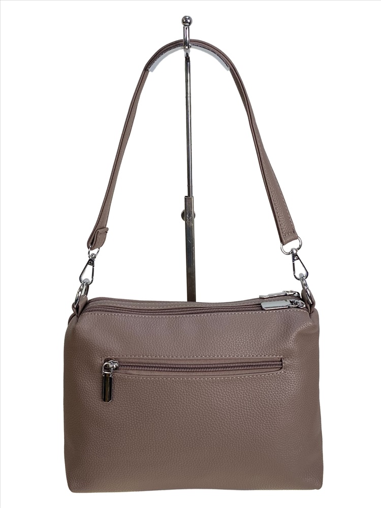 Длина: 24 см Высота: 18 см Ширина: 5 см Ручка: 20 Длинный ремень: да Вес: 530 гр Материал: Искусственная кожа Подклад: Текстиль Тип застёжки: Молния Упаковка: Тканевый пакет, полиэтиленовый пакет Элегантная женская сумка из мягкой искусственной кожи. Сумка имеет два отделения, каждое закрывается на молнию, внутри дополнительный карман на молнии и два открытых кармана. Снаружи, на передней стенке прорезной карман на молнии. На задней стенке карман на молнии. В комплекте удобная ручка и длинный плечевой ремень.