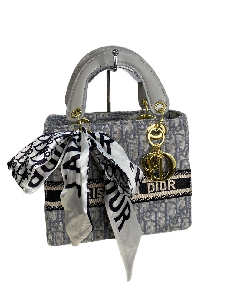 Компактная женская сумка из искусственной кожи и текстиля. Сумка закрывается на молнию, внутри одно основное отделение, дополнительный карман на молнии и открытый карман. В комплекте удобные ручки и длинный плечевой ремень. Сумка дополнена шёлковым платком и оригинальным брелком.