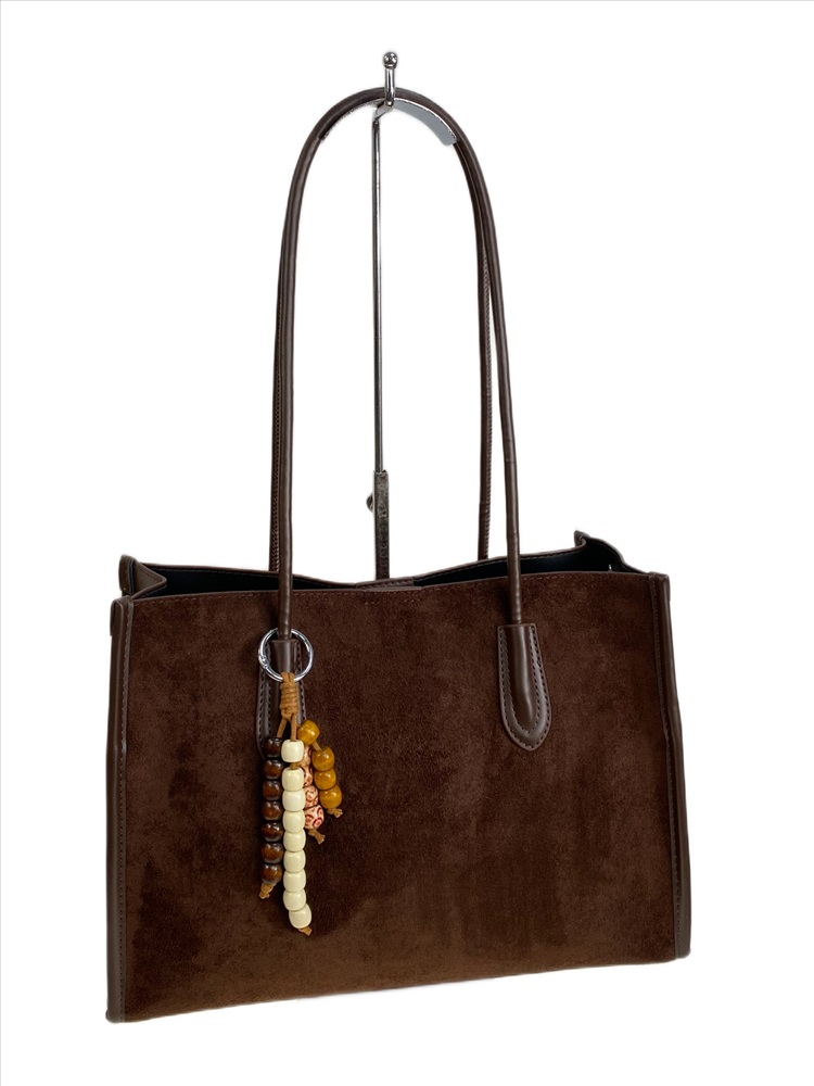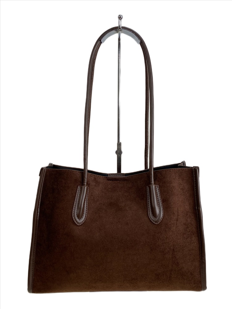 Длина: 31 см Высота: 23 см Ширина: 10 см Ручки: 30 Вес: 550 гр Материал: Искусственная замша Подклад: Текстиль Тип застёжки: кнопка Упаковка: Тканевый пакет, полиэтиленовый пакет Женская сумка из искусственной замши. Сумка имеет ручки, удобно носить на плече, в руках или на запястье. Сумка закрывается на кнопку, внутри текстильная косметичка и карман на молнии. Дополнена оригинальным брелком.