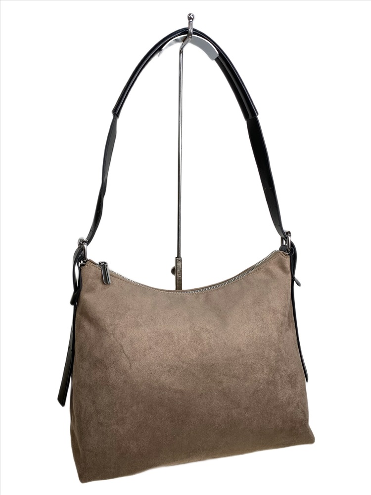 Компактная женская сумка из искусственной замши. Сумка закрывается молнию, внутри одно основное отделение, дополнительный карман на молнии. В комплекте длинный плечевой ремень. Длина ручки варьируется от 26 см до 48 см.