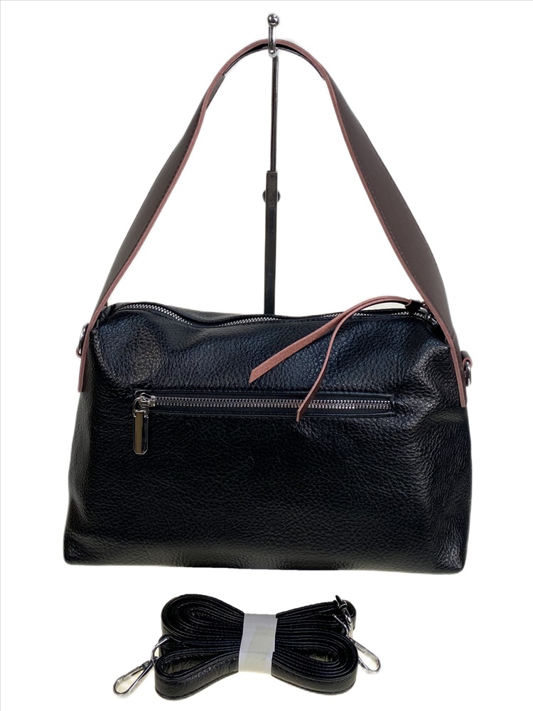 Классическая женская сумка из натуральной кожи. Закрывается на молнию, внутри два отделения, разделенных карманом на молнии, карман на молнии и открытый карман. Снаружи на передней стенке два кармана на магнитной кнопке. На задней стенке карман на молнии. В комплекте длинный плечевой ремень.
