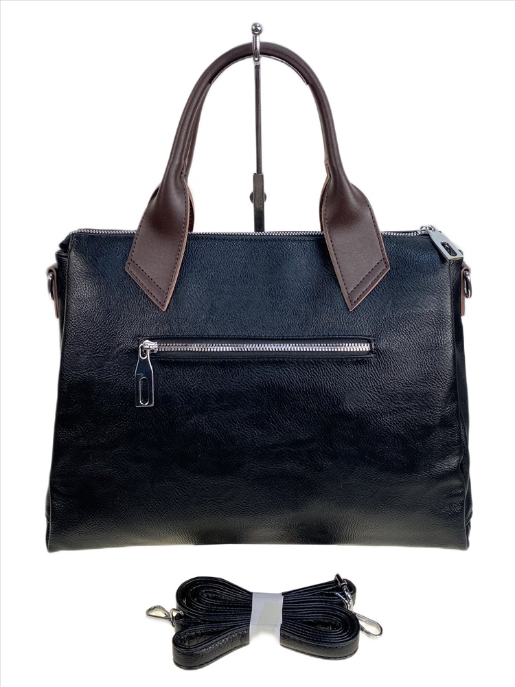 Классическая женская сумка из натуральной кожи. Закрывается на молнию, внутри три отделения, центральное отделение закрывается на молнию, дополнительный карман на молнии и два открытых кармана. Снаружи на передней стенке карман на молнии. На задней стенке карман на молнии. В комплекте длинный плечевой ремень.