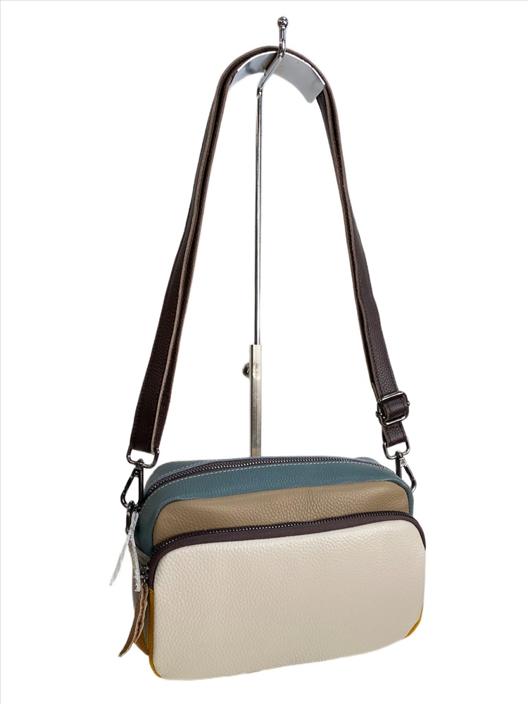 Компактная женская сумка из натуральной кожи. Сумка имеет одно отделение, закрывается на молнию, внутри дополнительный карман на молнии и открытый карман. На фронтальной стенке накладной карман на молнии. На задней стенке карман на молнии. В комплекте длинный плечевой ремень, регулируется по длине.