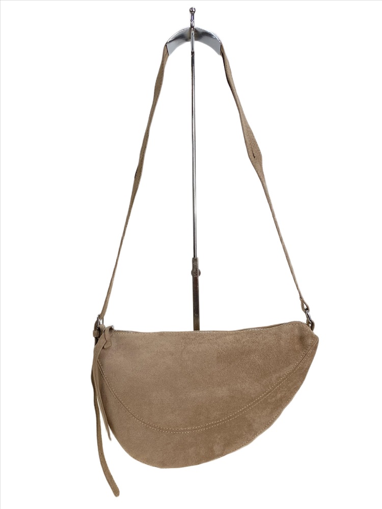 Элегантная женская сумка-седло из искусственной замши. Сумка закрывается на молнию, внутри одно основное отделение и дополнительный карман на молнии. В комплекте удобная ручка, длина варьируется от 37 см до 53 см.