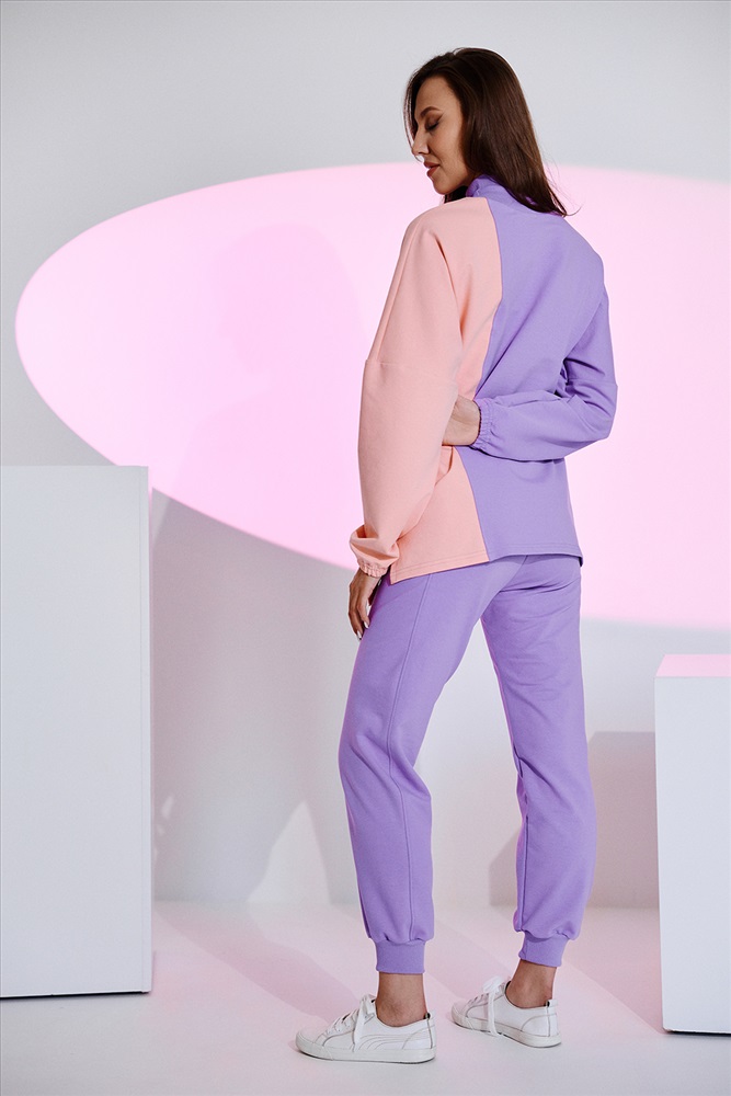 Свитшот женский, модель свободная из контрастных тканей, прямого силуэта. Горловина выполнена из кашкорсе. Рукав со спущенной проймой, манжета на резинке.