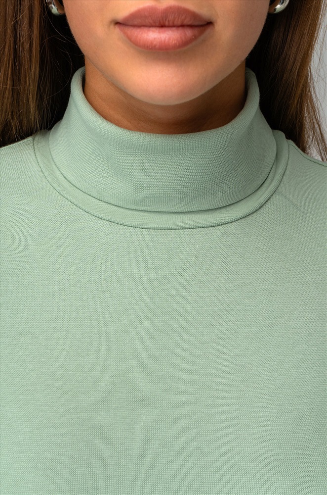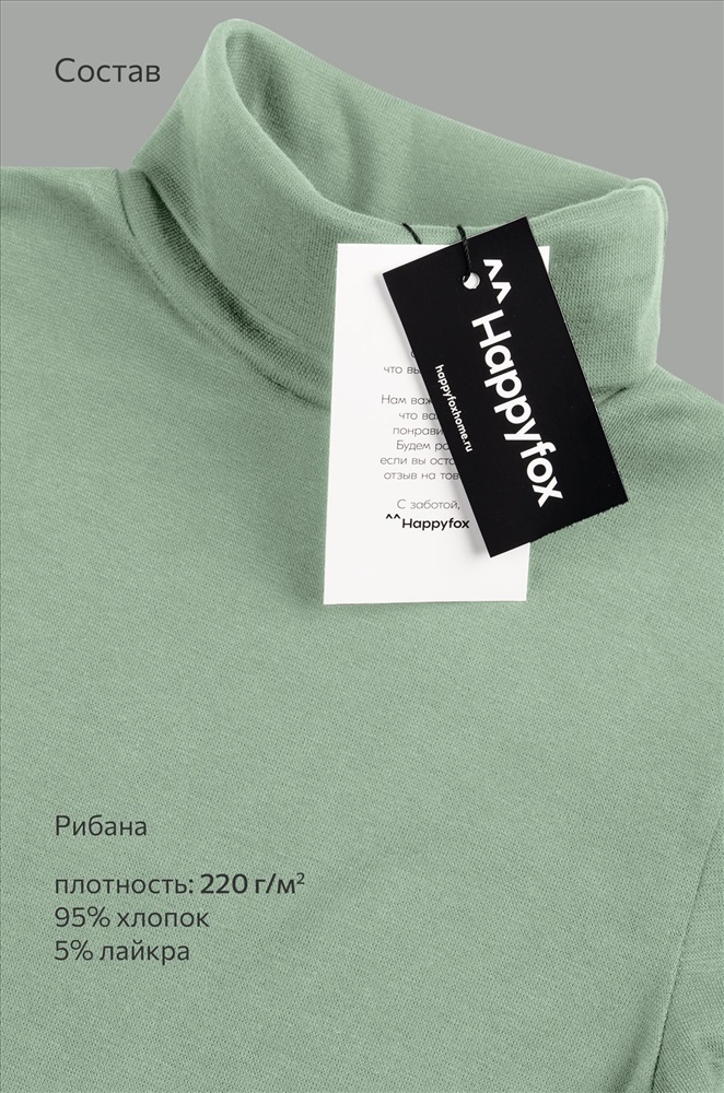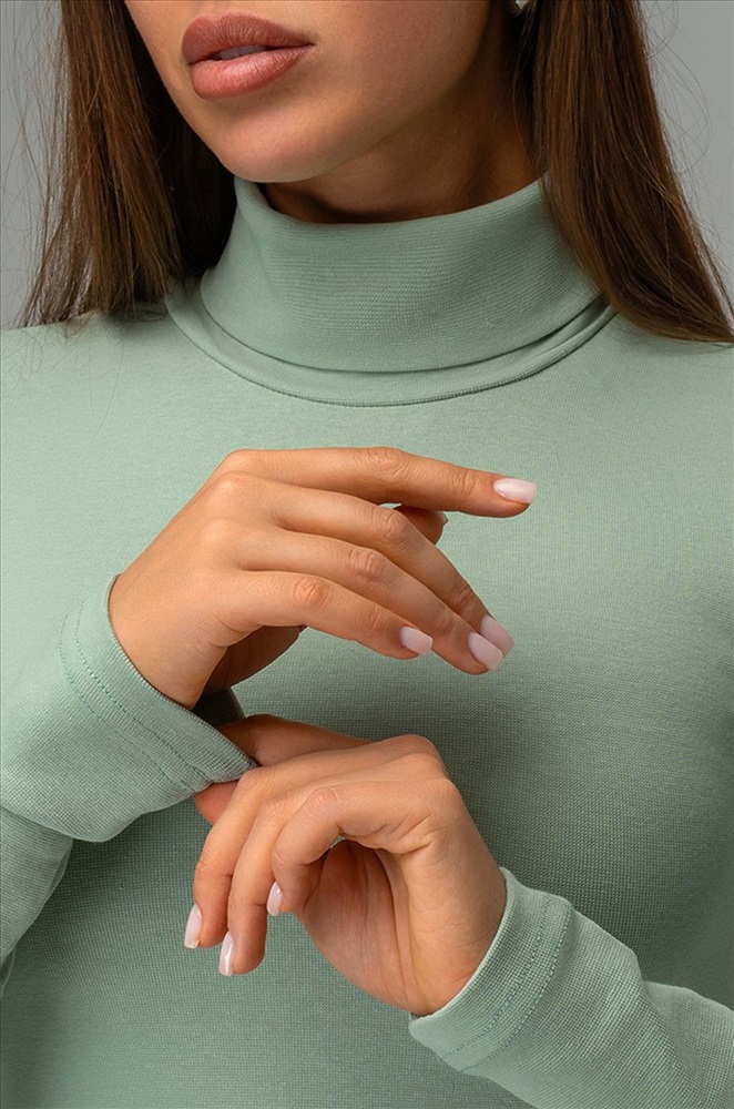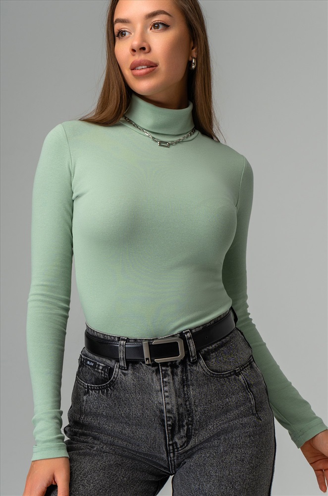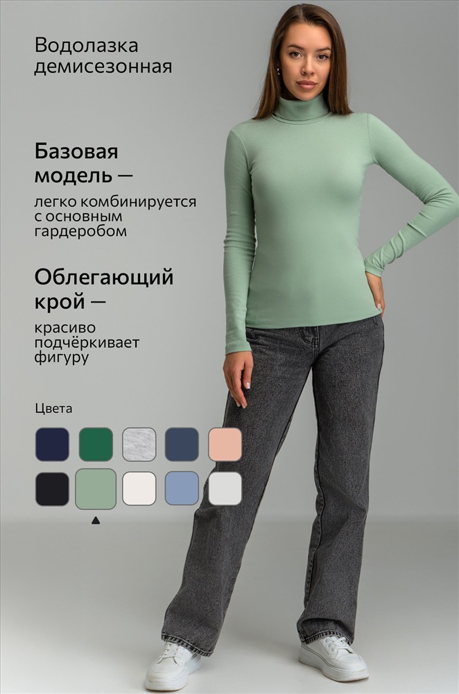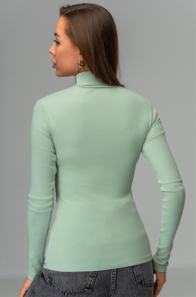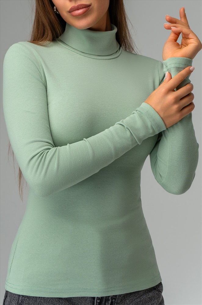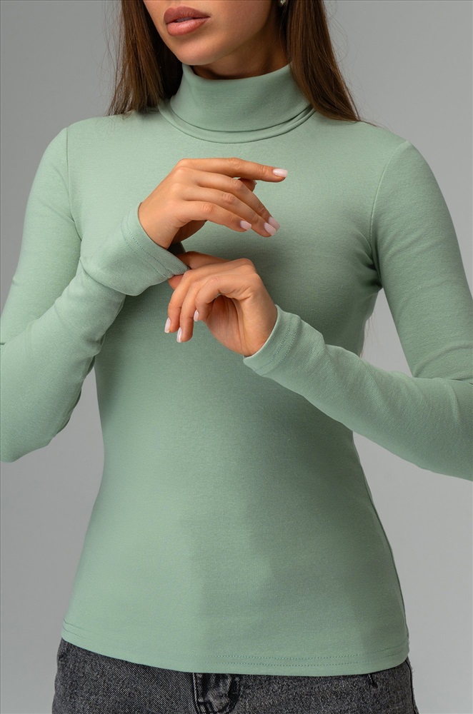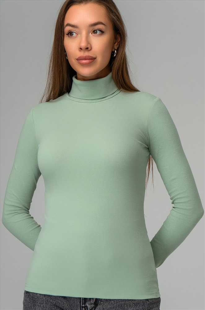 Комфорт с первого прикосновения! Женская водолазка из хлопковой рибаны подарит мягкость и уют на каждый день. Высокий ворот, длинные рукава и универсальный светло-зеленый цвет делают этот базовый лонг незаменимым в гардеробе.