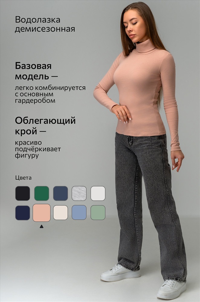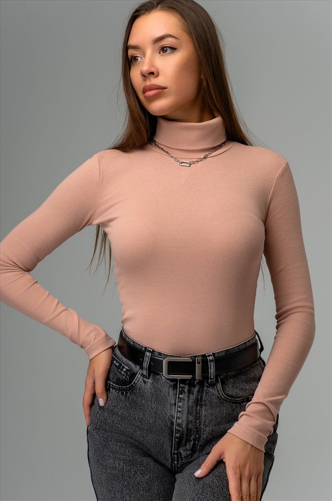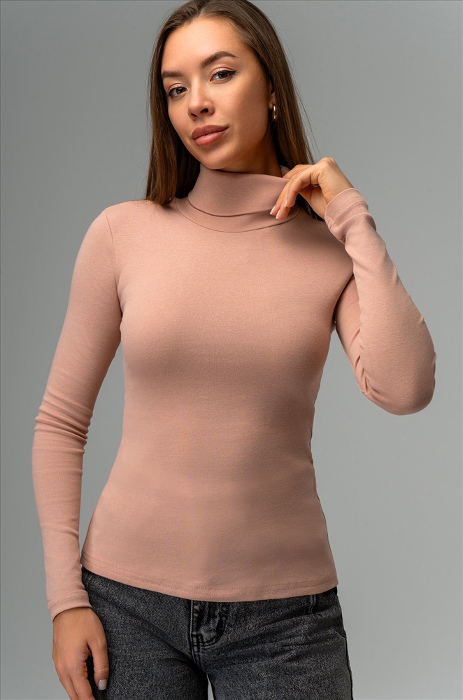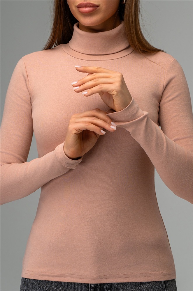 Комфорт с первого прикосновения! Женская водолазка из хлопковой рибаны подарит мягкость и уют на каждый день. Высокий ворот, длинные рукава и универсальный бежевый цвет делают этот базовый лонг незаменимым в гардеробе.
