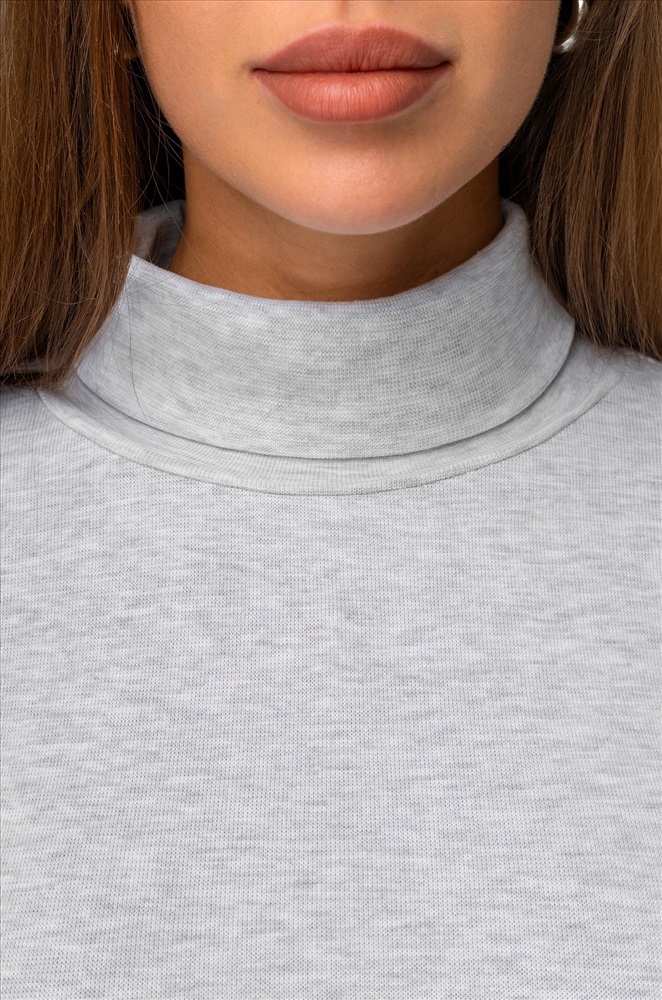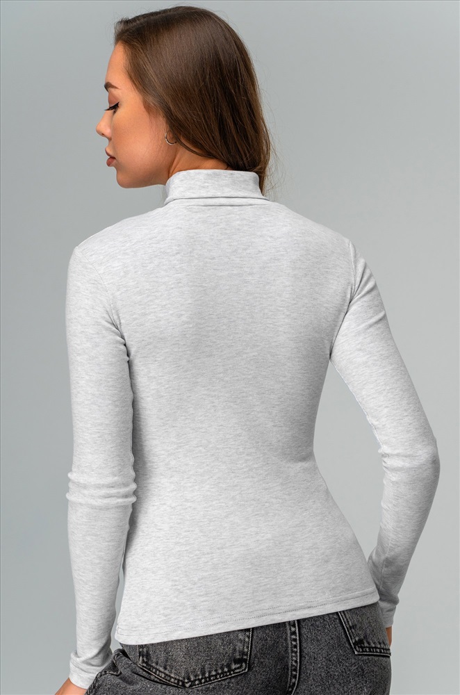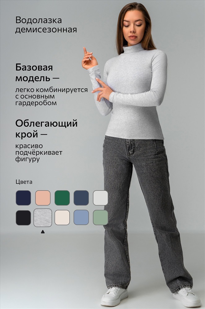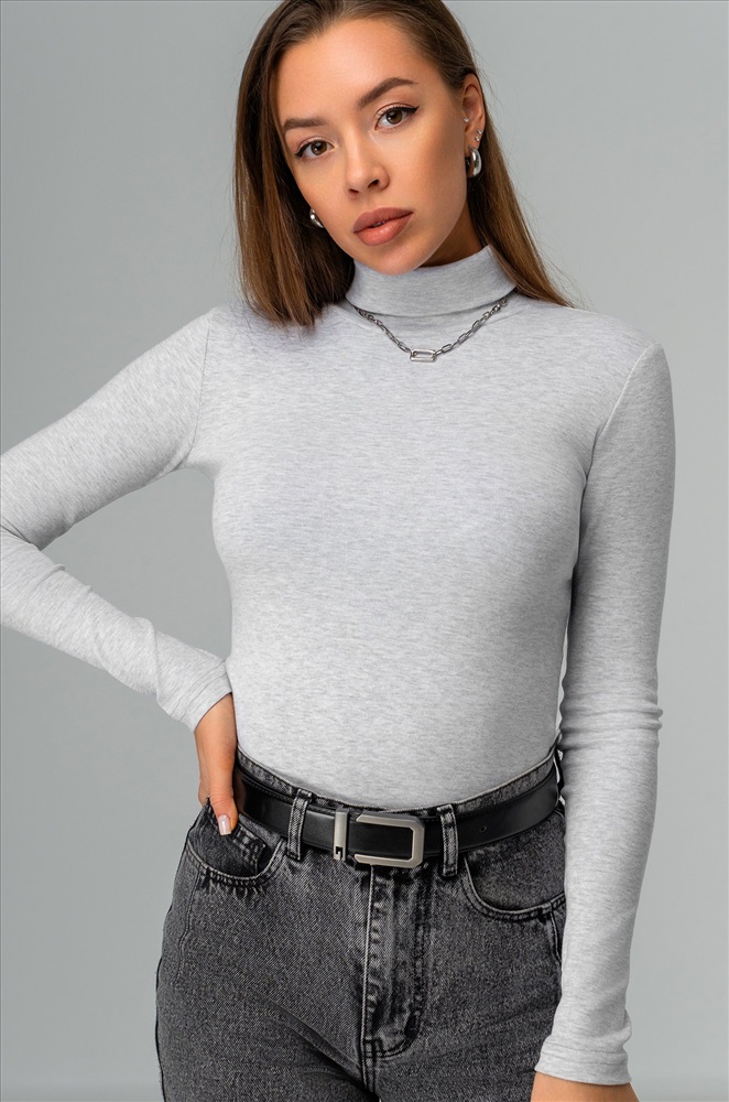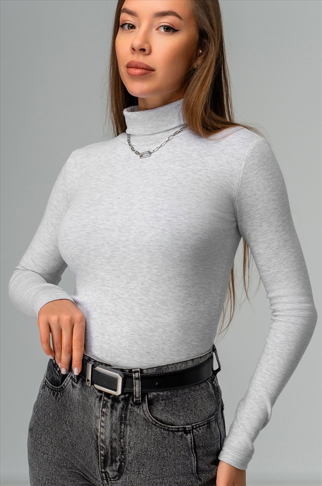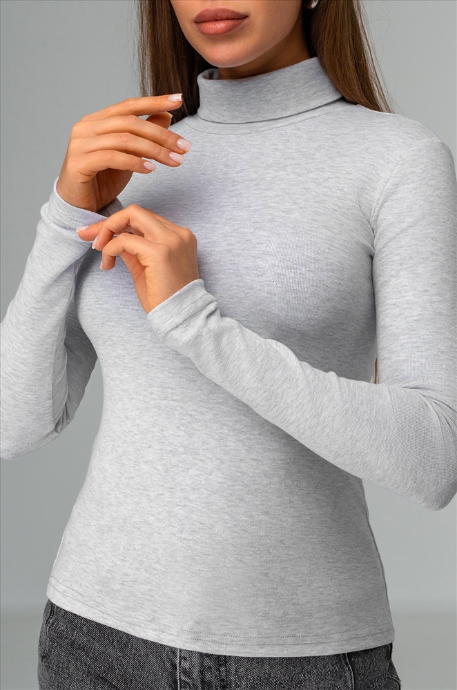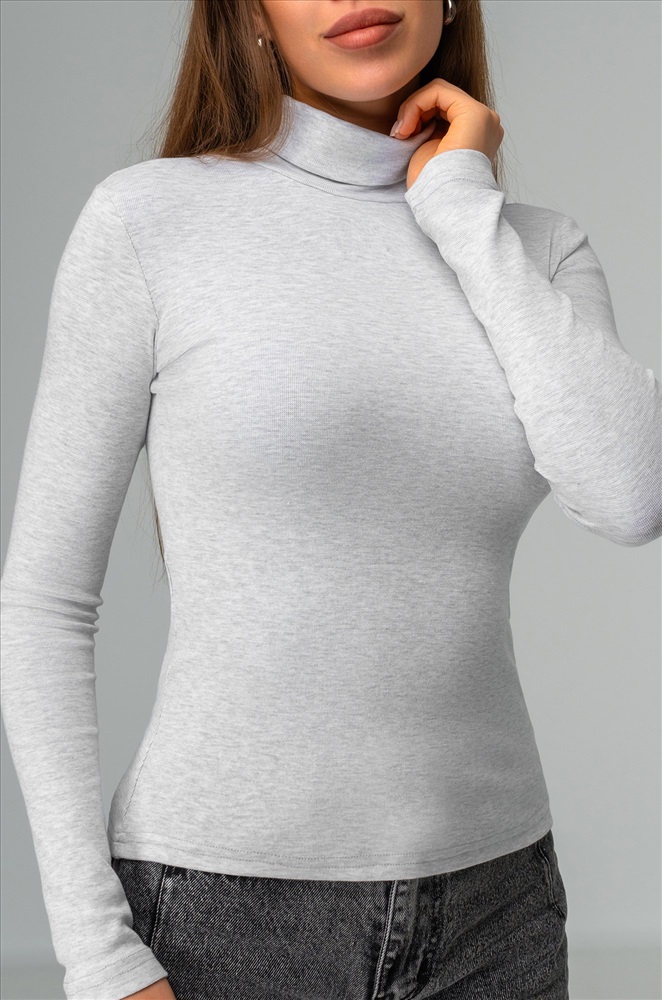 Комфорт с первого прикосновения! Женская водолазка из хлопковой рибаны подарит мягкость и уют на каждый день. Высокий ворот, длинные рукава и универсальный светло-серый цвет делают этот базовый лонг незаменимым в гардеробе.