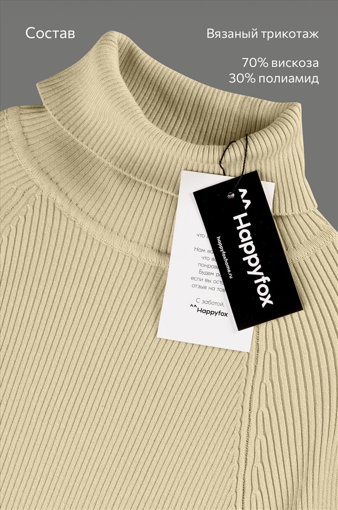 — теплая водолазка выполнена из дышащего, мягкого и приятного к телу вязаного трикотажа в рубчик;