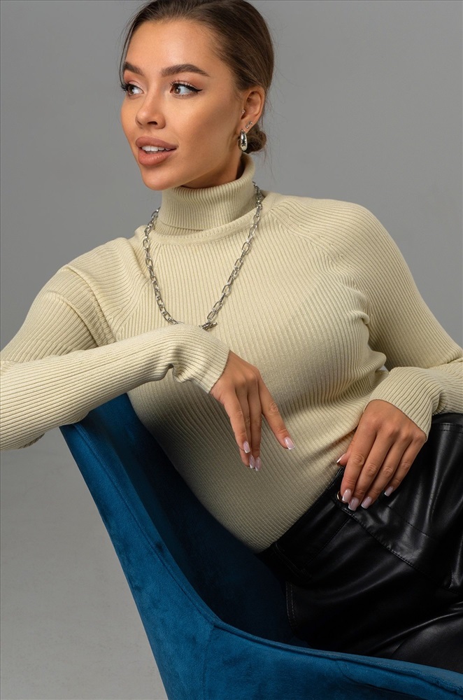 Женская вязаная водолазка в рубчик – идеальный выбор для образов на осень и весну.Классическая демисезонная водолазка выполнена из вязаного трикотажа, в ней будет уютно и тепло в прохладную погоду.