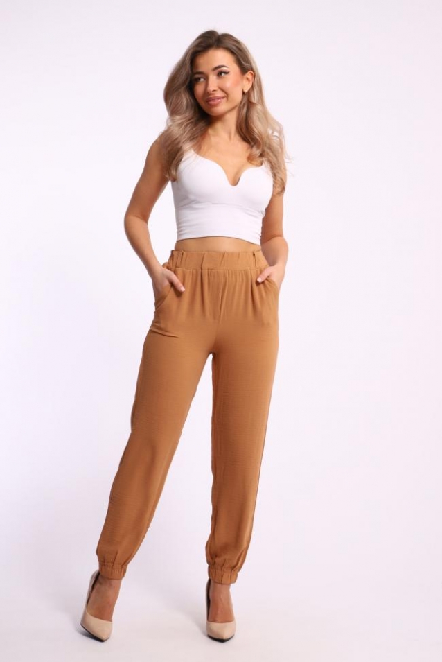 Ищите идеальные женские брюки свободного кроя, которые сочетают в себе комфорт и стиль? Наши женские брюки с боковыми карманами это ваш лучший выбор! Изготовленные из высококачественного материала, они дарят невероятное ощущение свободы и уверенности в каждом движении. Особенности: Свободный крой: Брюки свободного кроя идеально подойдут для любого типа фигуры. Они подчеркнут ваши достоинства и скроют недостатки, даря комфорт в любой ситуации. Боковые карманы: Практичные боковые карманы позволяют взять с собой все необходимое, будь то телефон, ключи или другие мелкие аксессуары. Пояс на резинке: Эластичный пояс добавляет комфорта и делает посадку брюк еще более удобной. Он обеспечивает идеальную фиксацию на талии и позволяет вам свободно двигаться в течение дня. Низ на резинке: Брюки с низом на резинке придают модный акцент вашему образу и подчеркивают легкость и непринужденность стиля. Почему стоит выбрать эти брюки: Универсальность: Эти брюки станут отличным дополнением как к повседневному, так и к более элегантному гардеробу. Носите их с кедами или туфлями на каблуке. Комфорт и стиль: Воплотите в жизнь идею о комфорте, не жертвуя стилем. Брюки свободного кроя обеспечивают легкость движений и великолепно смотрятся в любой обстановке. Качественные материалы: Использование высококачественных материалов гарантирует долговечность и износостойкость брюк. Сценарии для использования: Идеальны для активного дня, прогулок или поездок. Отлично подойдут для работы, особенно если ваш офисный стиль допускает элементы непринужденности. Прекрасный выбор для путешествий, когда комфорт стоит на первом месте.