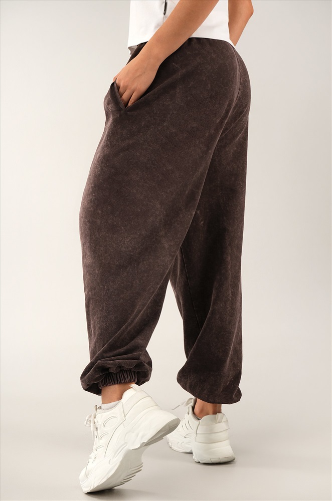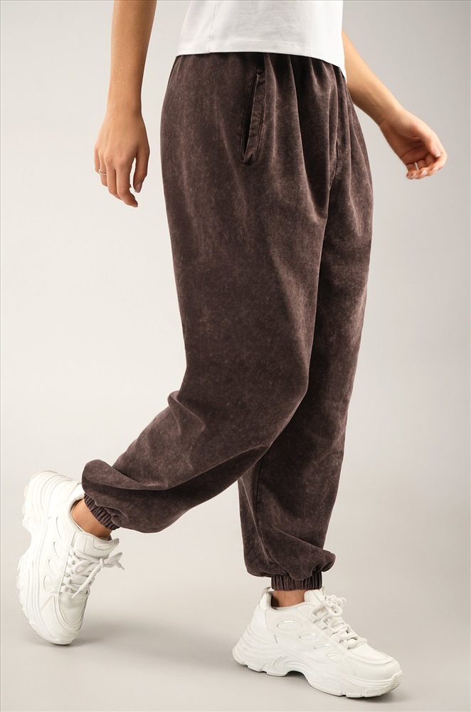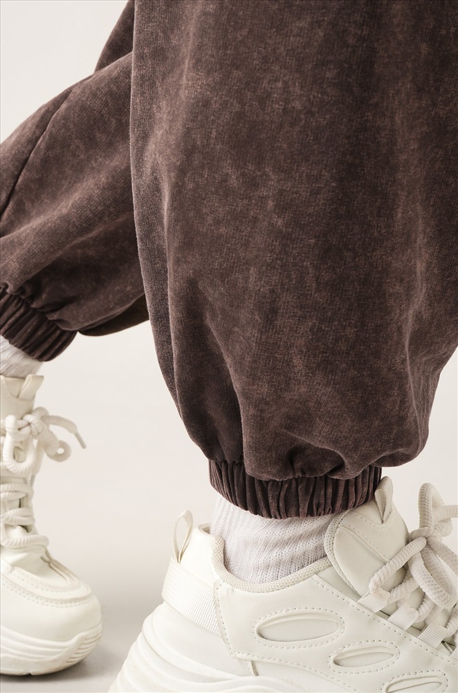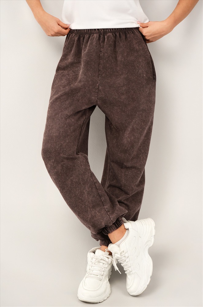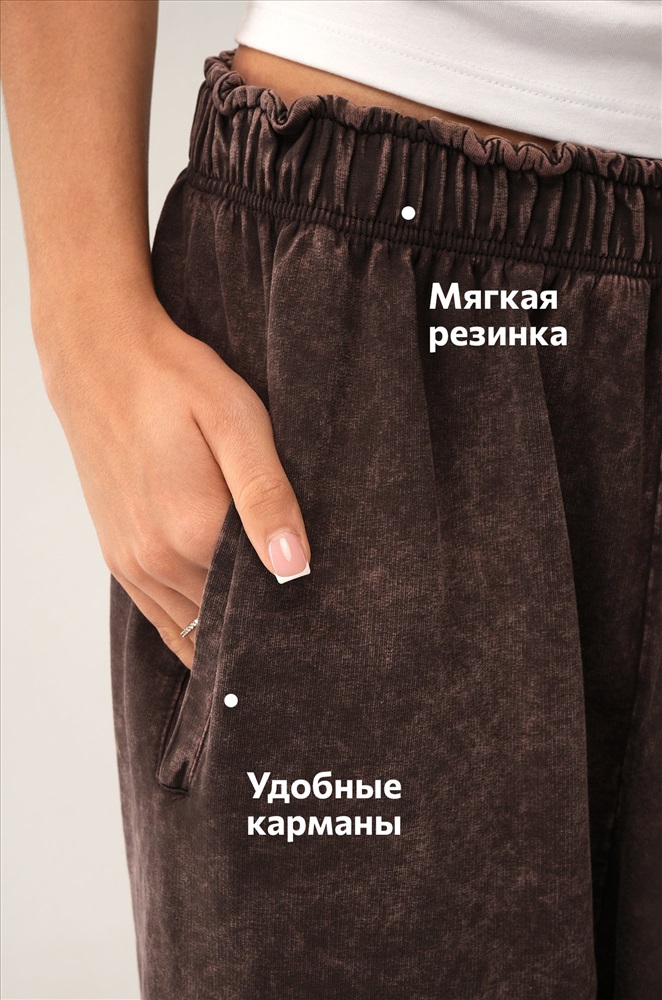 Широкие женские брюки созданы для тех, кто выбирает свободу движений и комфорт каждый день. Мягкий трикотаж, свободный крой и лёгкий винтажный эффект превращают коричневые спортивные штаны в стильные джоггеры.
