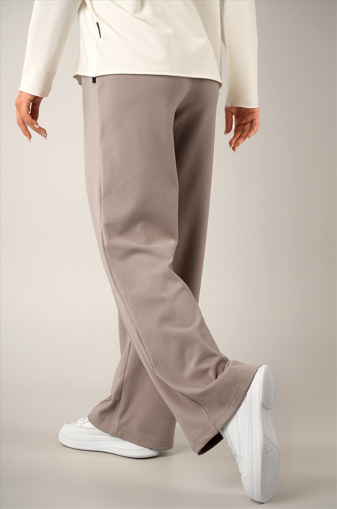 Мягкие и удобные брюки палаццо цвета латте подойдут для девушек и женщин, которые ценят комфорт и элегантность. Широкие брюки можно носить в спортивном стиле или как домашние штаны для уютных вечеров. Демисезонные модели из плотной ткани создадут гармоничный осенний или весенний образ на каждый день.
