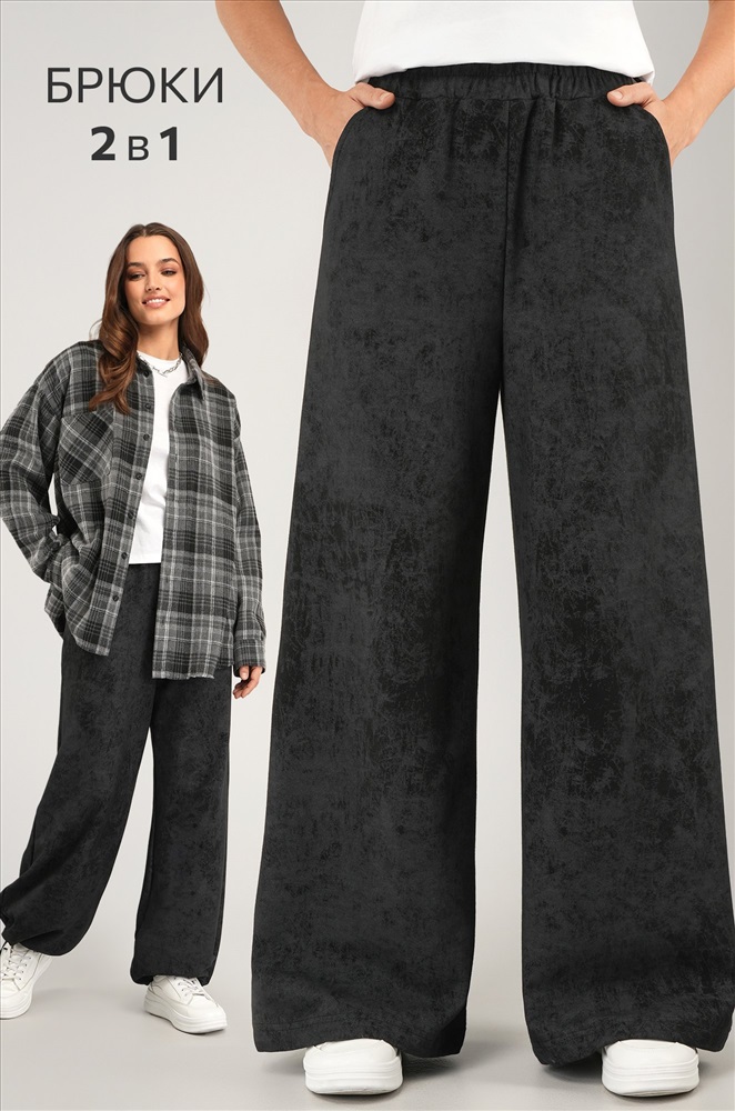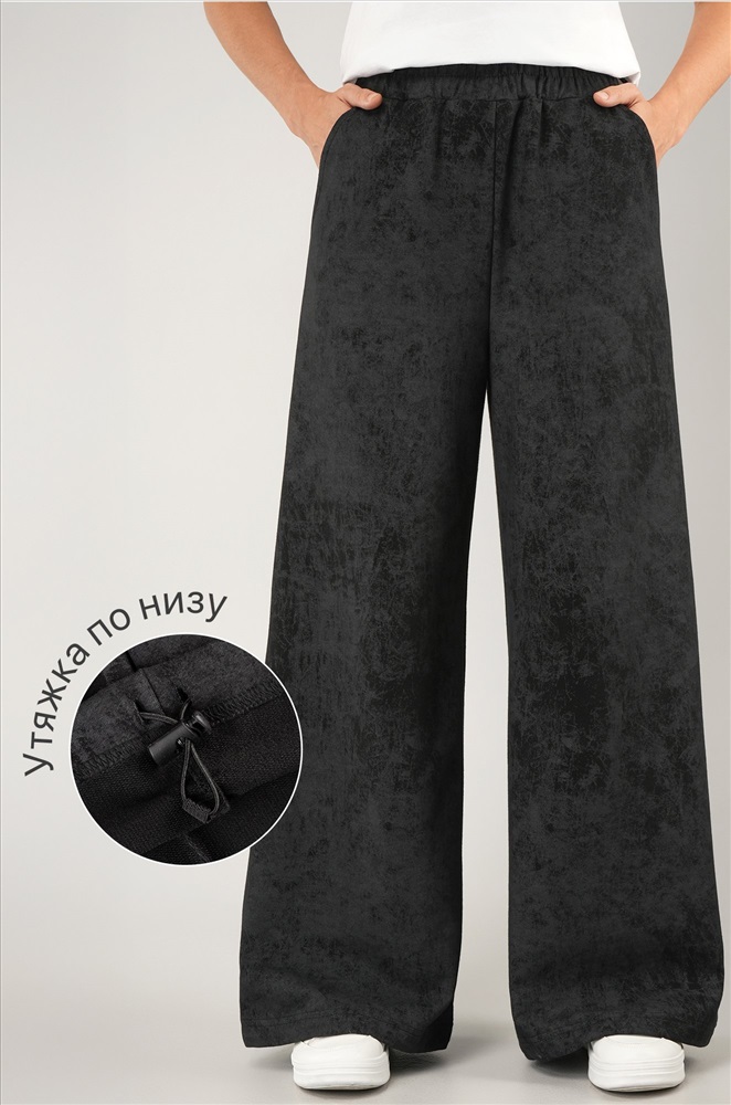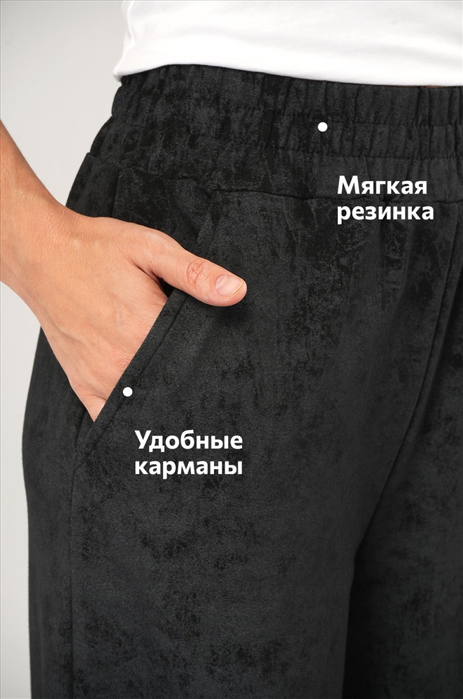 Преимущества: – выполнены из мягкого трикотажа с добавлением лайкры; – плотные хлопковые брюки держат форму и не растягиваются; – высокая посадка подчеркивает талию (плотность 240 г/м2); – утяжка со стопперами по низу позволяет легко превратить брюки палаццо в джоггеры; – внутренние карманы для удобства. Длинные брюки свободного кроя идеально подойдут для осенних прогулок, активного весеннего отдыха или расслабленных домашних вечеров. Базовые трикотажные штаны для женщин станут универсальным выбором на каждый день, когда хочется комфорта и легкости в движении.