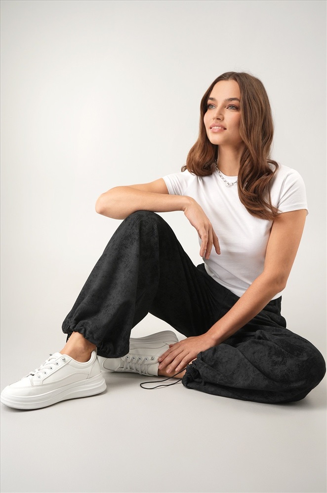 Черные женские брюки 2 в 1 от Happyfox легко станут любимыми! Удобные, эластичные и стильные, они созданы для того, чтобы чувствовать себя свободно и уверенно. Эти спортивные штаны в винтажной расцветке сочетают комфорт хлопка и функциональность деталей, делая их универсальными для осени и весны.