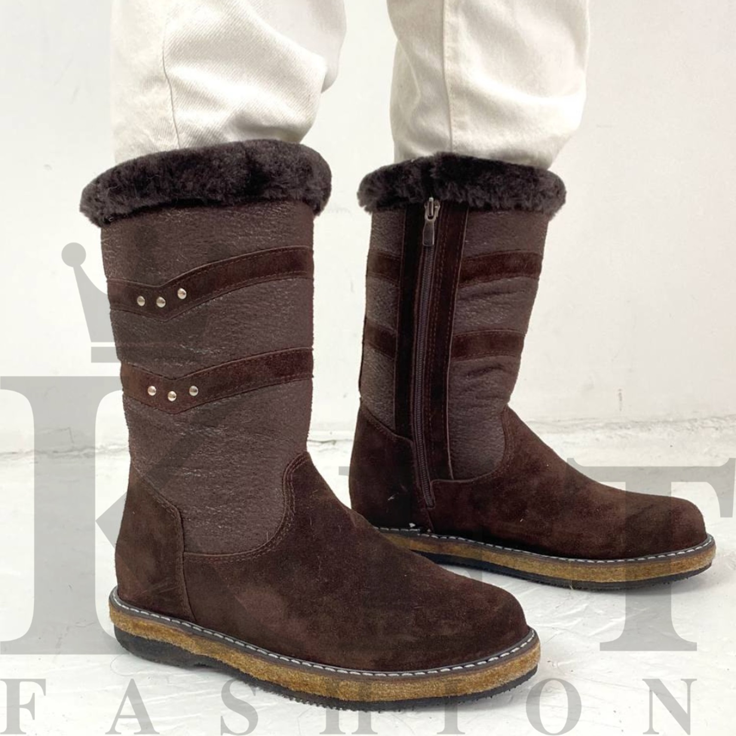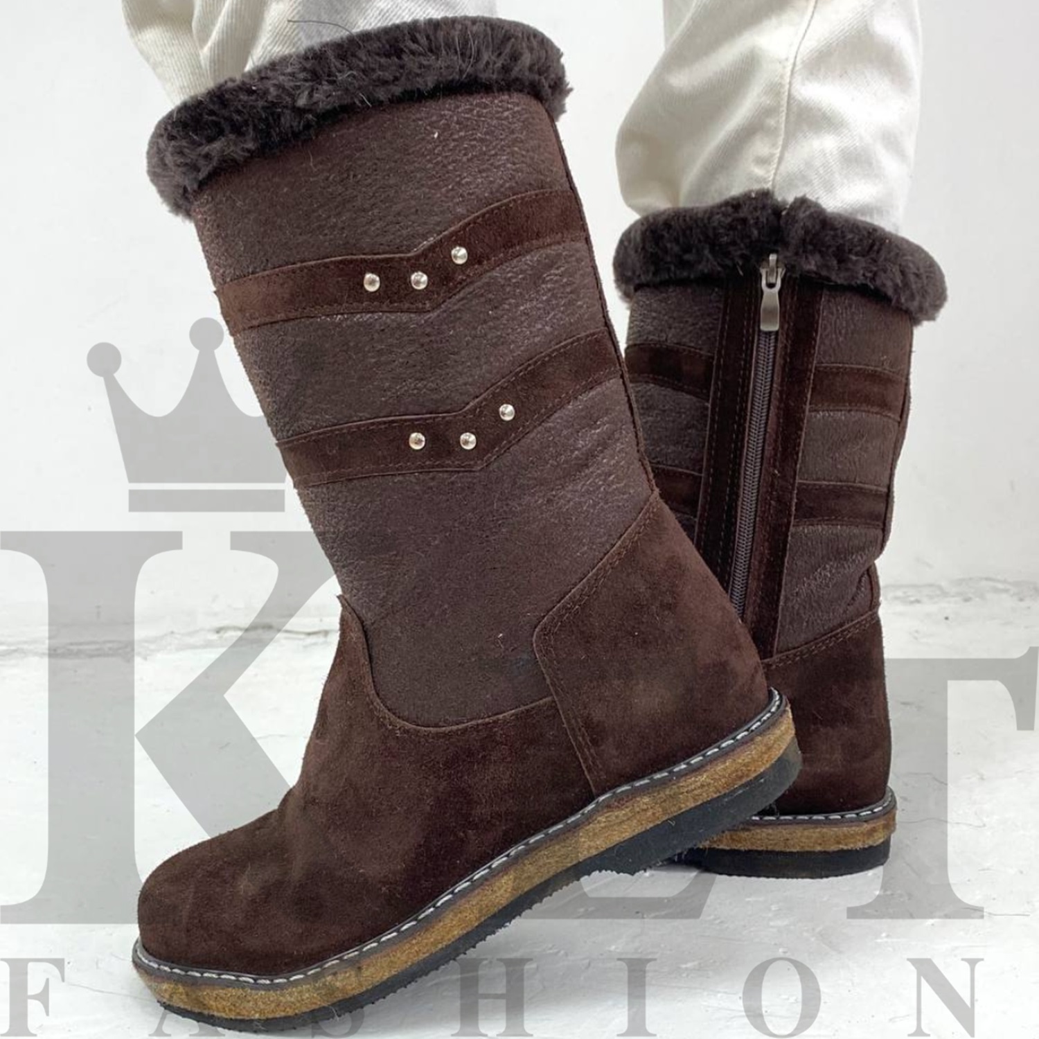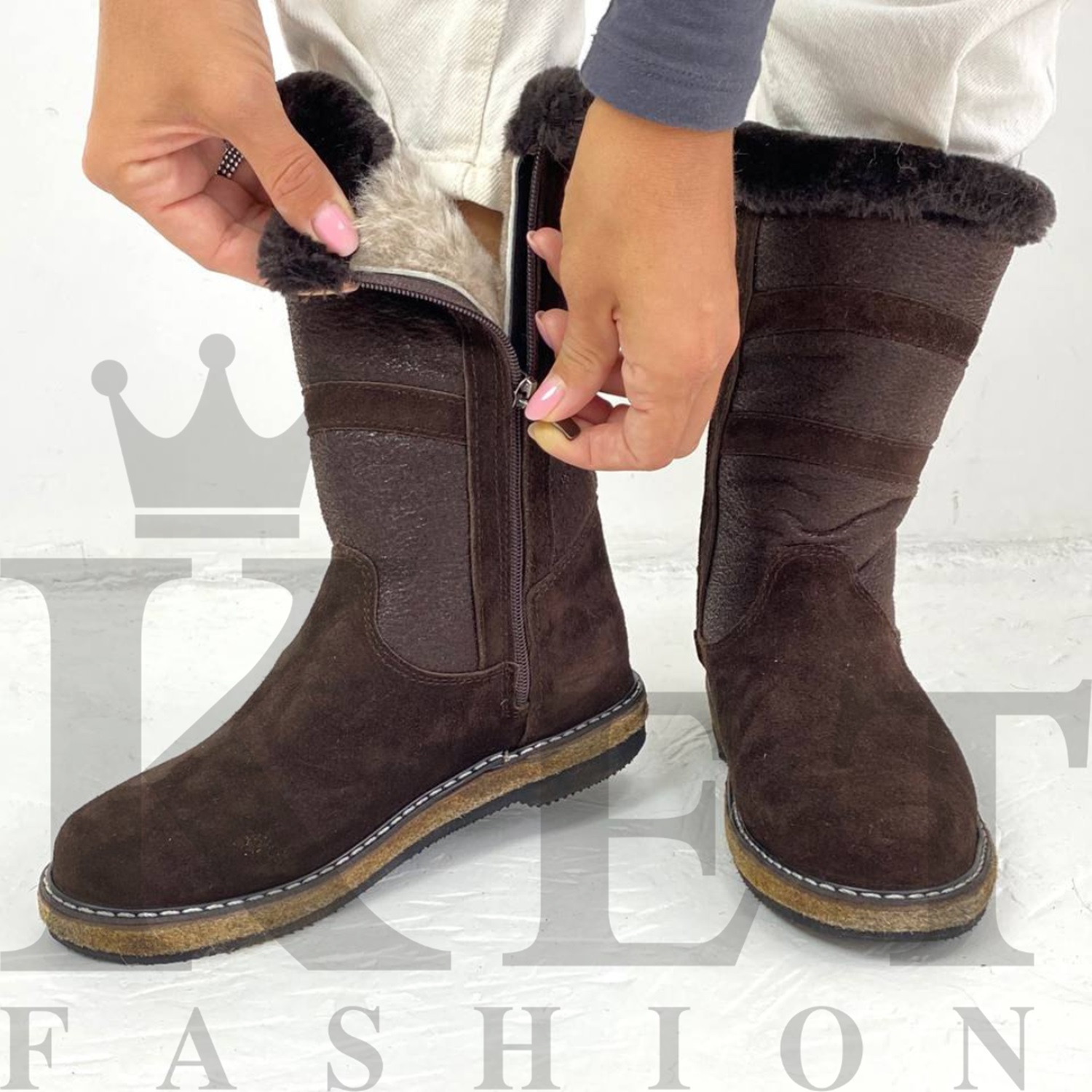 Наружняя сторона голенища – натуральная замша