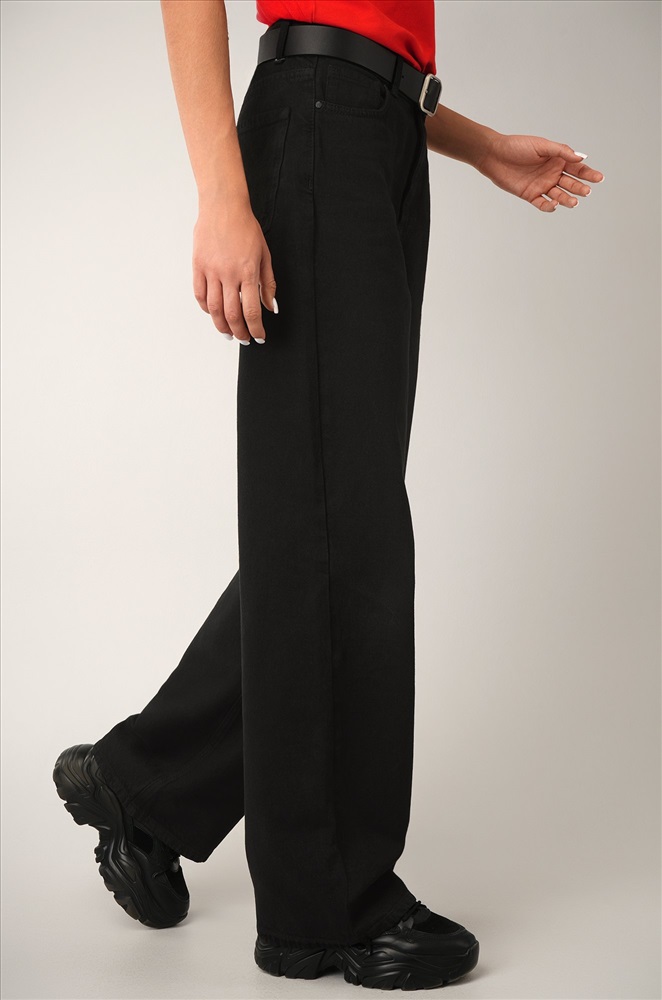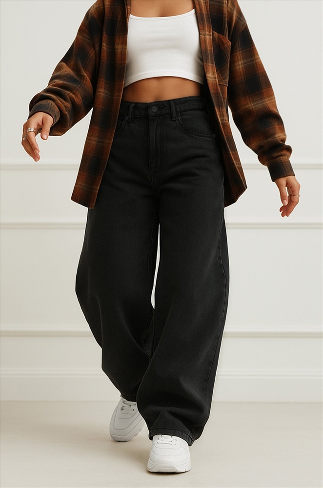 Однотонные черные джинсы идеальны для прогулок, встреч с друзьями, поездок или активных дней. Широкие джинсы для женщин легко впишутся в уличный стиль.