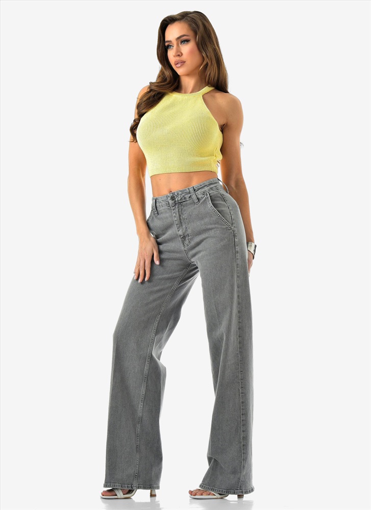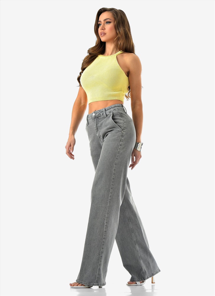 Женские джинсы палаццо от CRACPOT — светло-серого оттенка, идеальная посадка и премиальный турецкий деним (99% хлопок, 1% эластан).