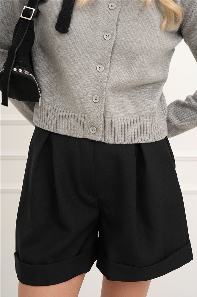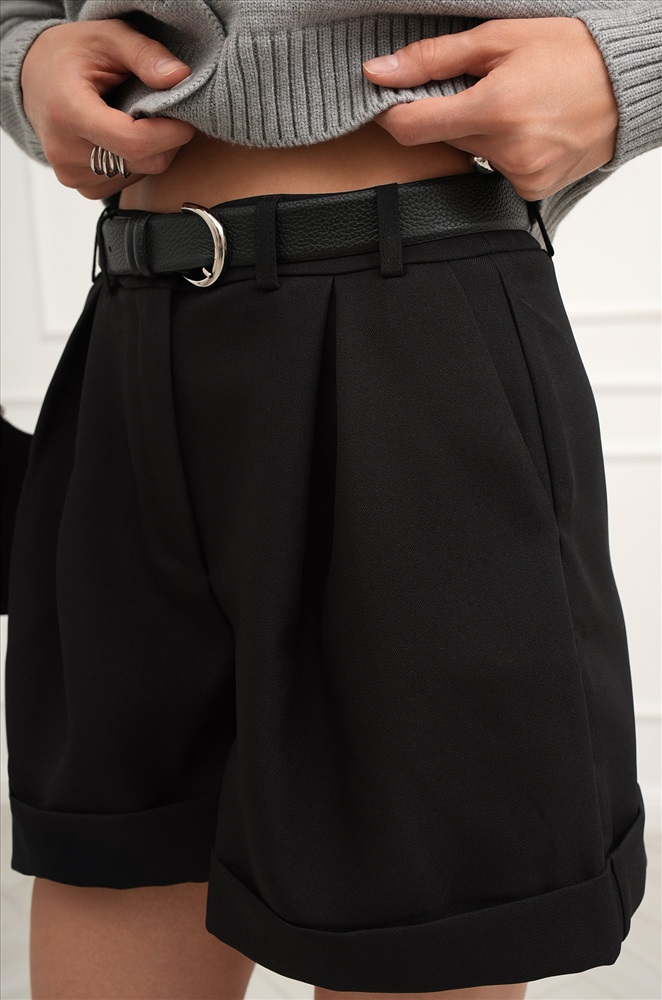 Классические черные шорты подойдут для любого случая: свидание, тусовка с друзьями или поход в офис. Женские шорты выполнены из костюмной ткани министр, мягкой и простой в уходе. Слегка расклешённый книзу силуэт и защипы подчеркнут стройность ваших ног и визуально удлинят их. Шлевки для ремня добавляют дополнительный акцент на талии. Однотонные шорты идеально подходят для тех, кто хочет выглядеть элегантно и стильно, но при этом чувствовать себя комфортно в течение всего дня. Плотная и приятная ткань с добавлением эластичных волокон хорошо сохраняет форму и мягко прилегает к телу. Благодаря высокой посадке и широким штанинам длинные шорты не сковывают движений, а карманы добавляют практичности. Шорты для женщин помогут создать деловые, романтические образы и образы в стиле smart casual (смарт кэжуал). Удлиненные шорты идеальны для учебы и офисной работы. Они подойдут для повседневных прогулок весной и осенью. Модель Анфиса, рост 170, 88-67-97. На ней размер 42. Внимание: ремень в комплект не входит.