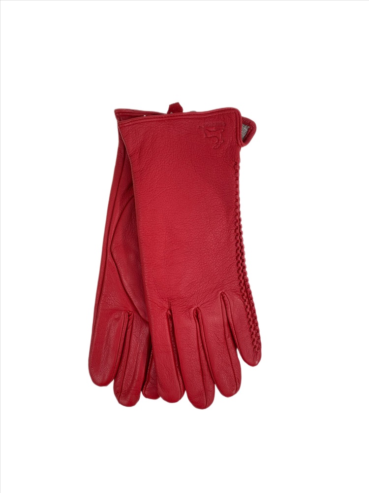 Женские перчатки из натуральной кожи, цвет красный